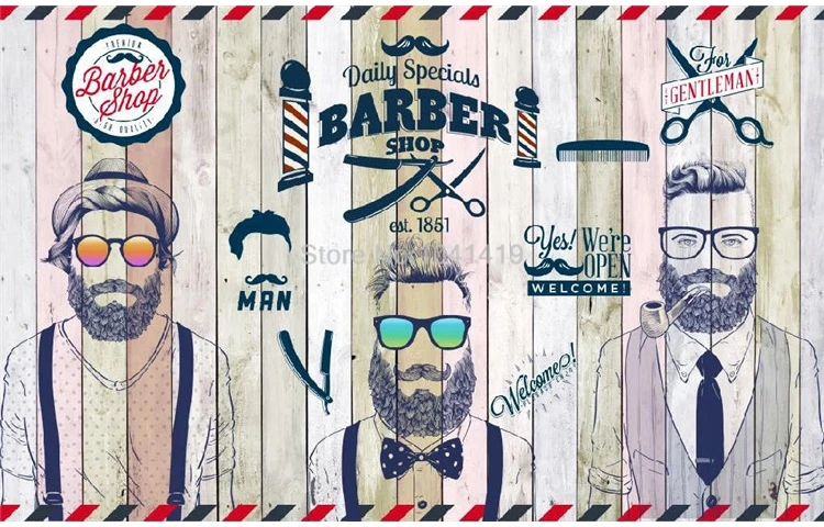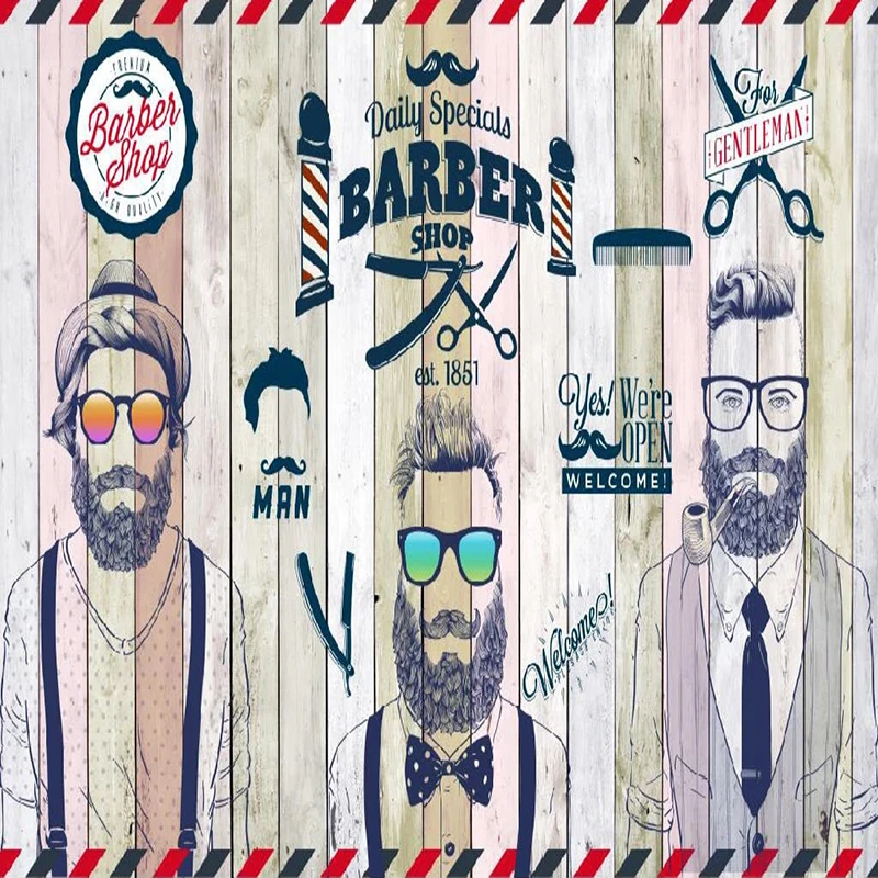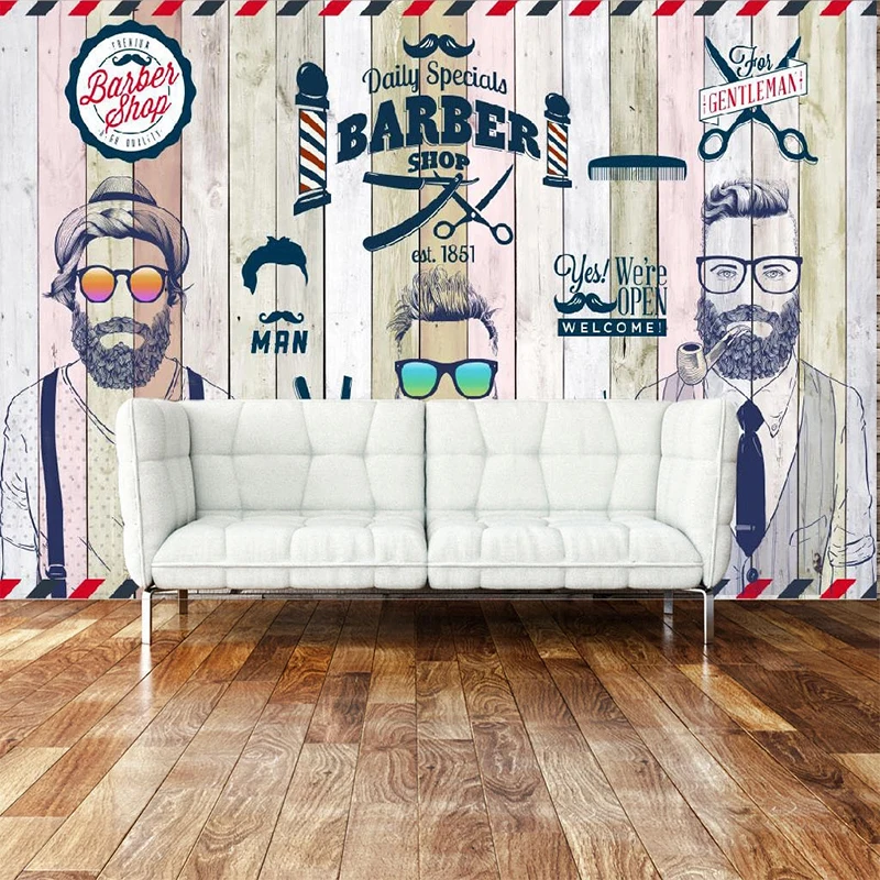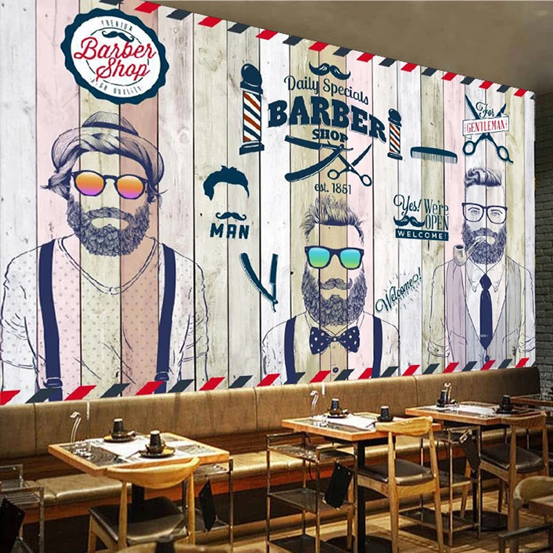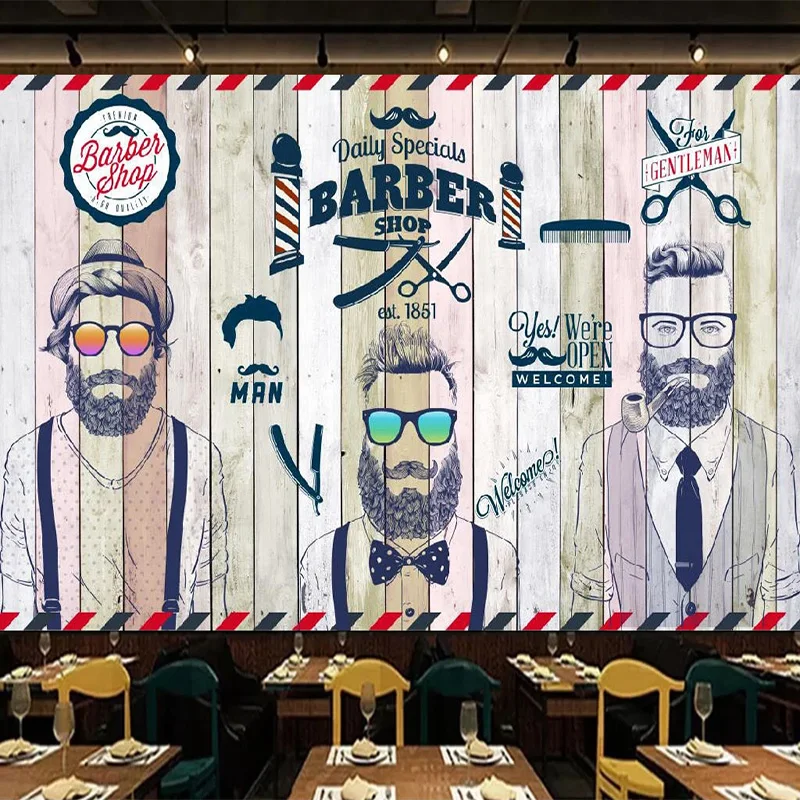 Фотообои в стиле ретро, художественный фон для барбершопа, 3D настенные росписи, деревянная доска, Расписанная вручную фигура, настенная живопись, Papel De Parede