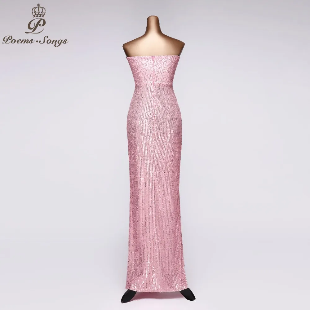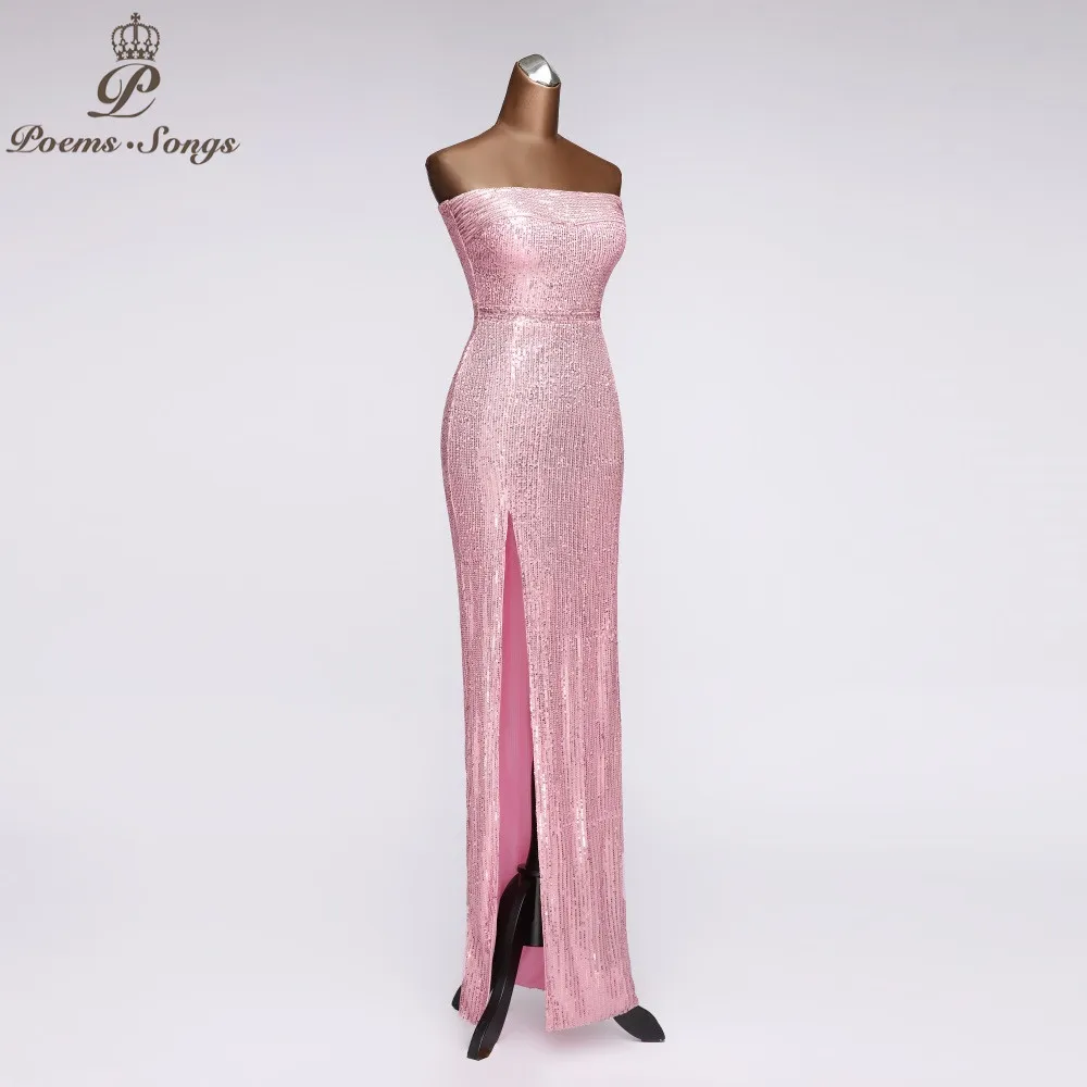 Женское вечернее платье до щиколотки, розовое платье без бретелек, платье для выпускного вечера