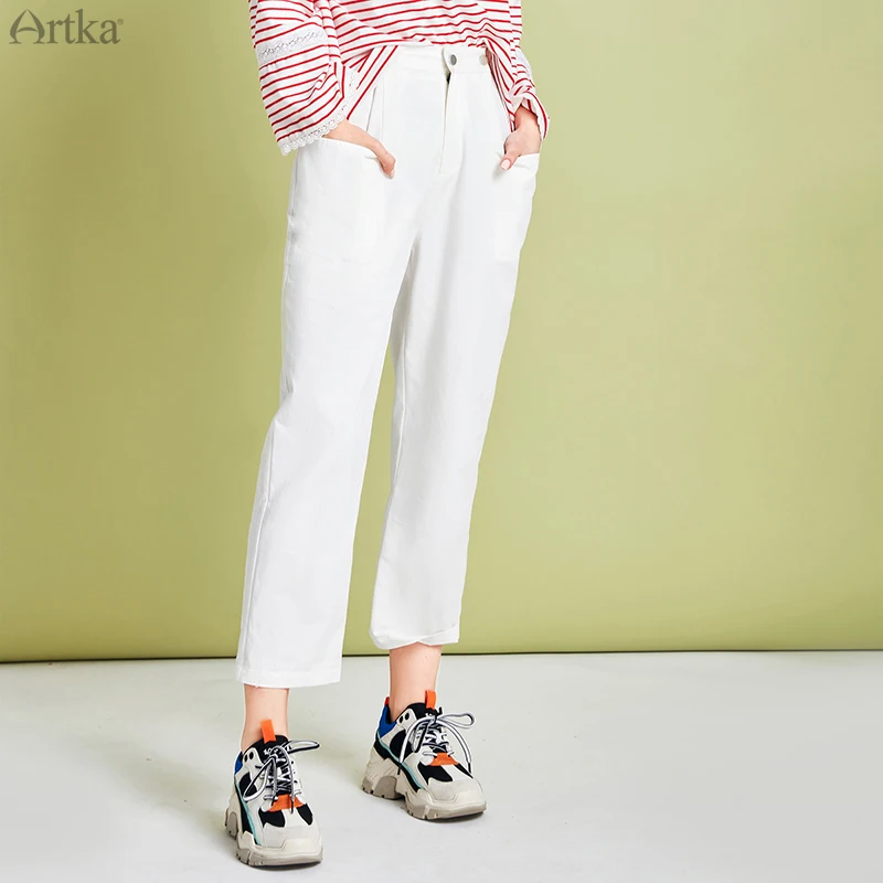 Женские брюки из 2020 хлопка ARTKA, прямые повседневные брюки свободного покроя из чистого хлопка, KA25001C, новинка для весны 100%