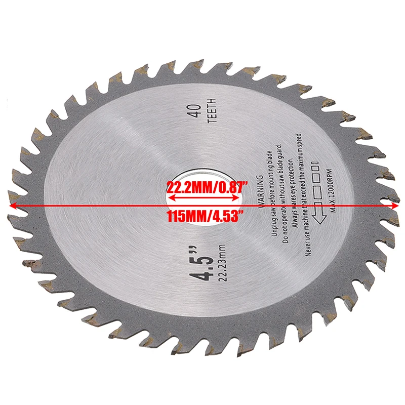 1 шт., кольцевые пильные диски из сплава, 40 зубьев, 4,5 дюймов, 115 мм, для угловой шлифовальной машины, резьба по дереву, режущий диск, электроинструменты