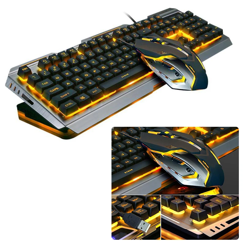 V1 USB Проводная эргономичная Механическая игровая клавиатура с подсветкой и набор мыши с панелью из алюминиевого сплава