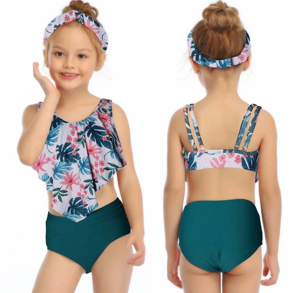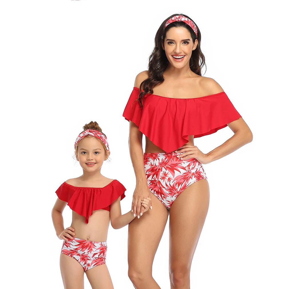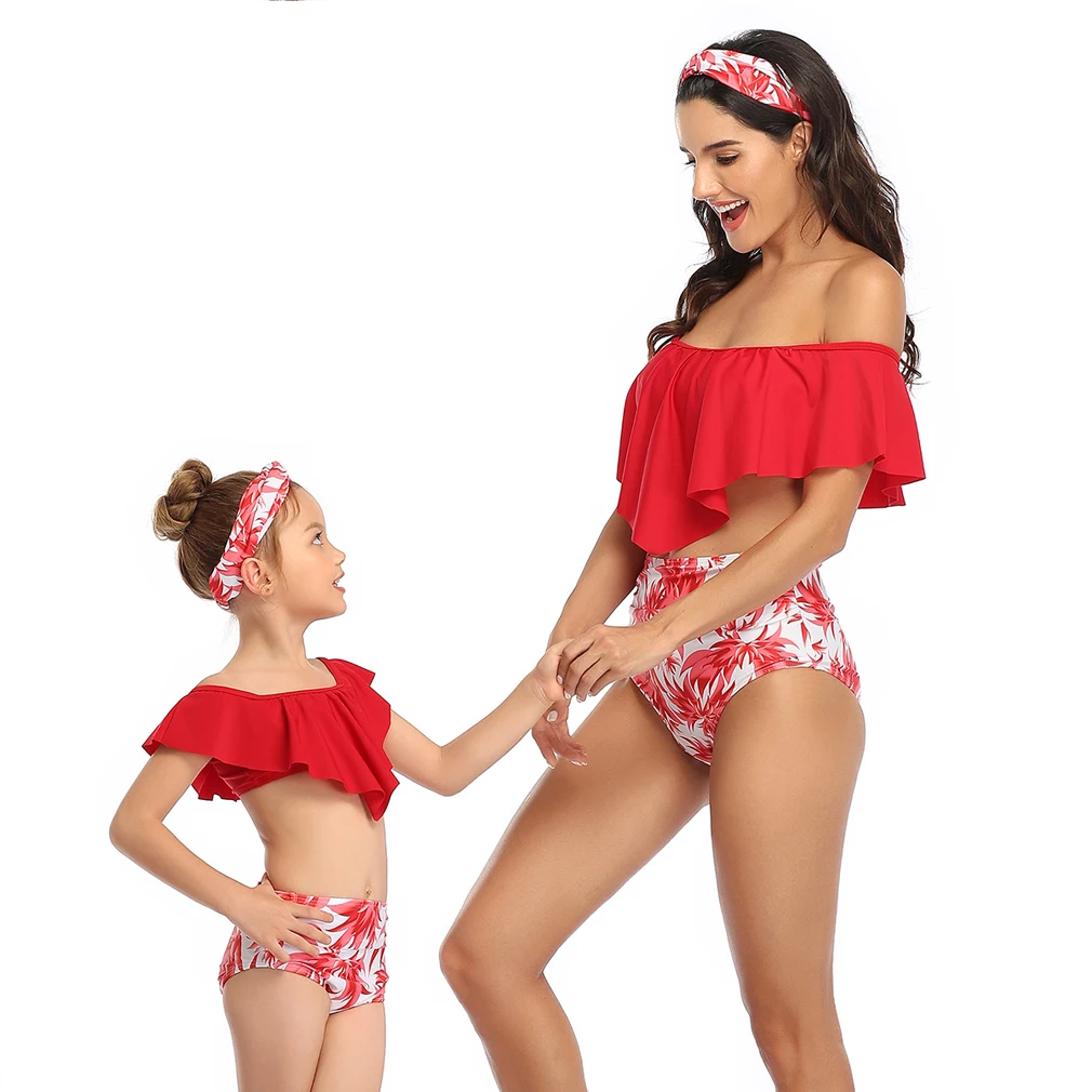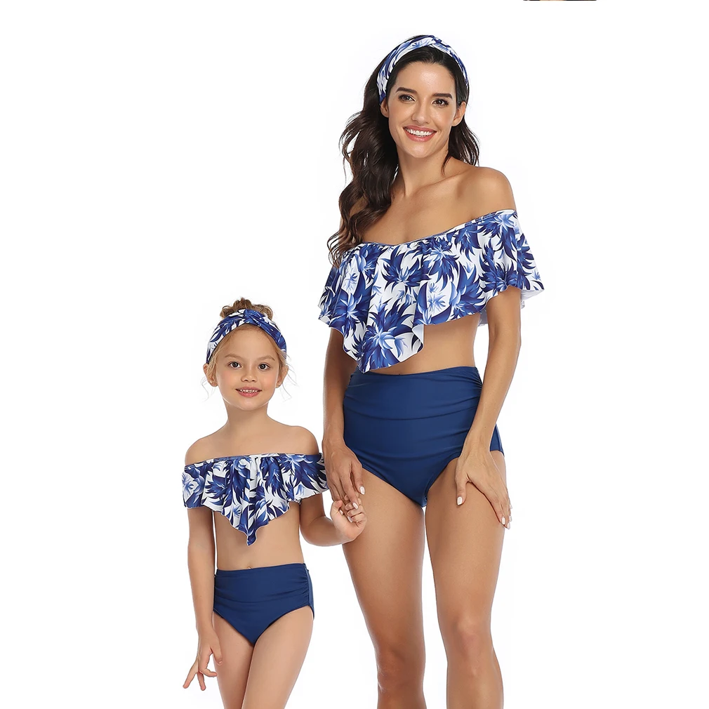 Одежда для купания для родителей и детей; женское детское бикини; коллекция 2020 года; семейный купальный костюм с высокой талией для мамы и дочки; пляжная одежда с цветочным принтом