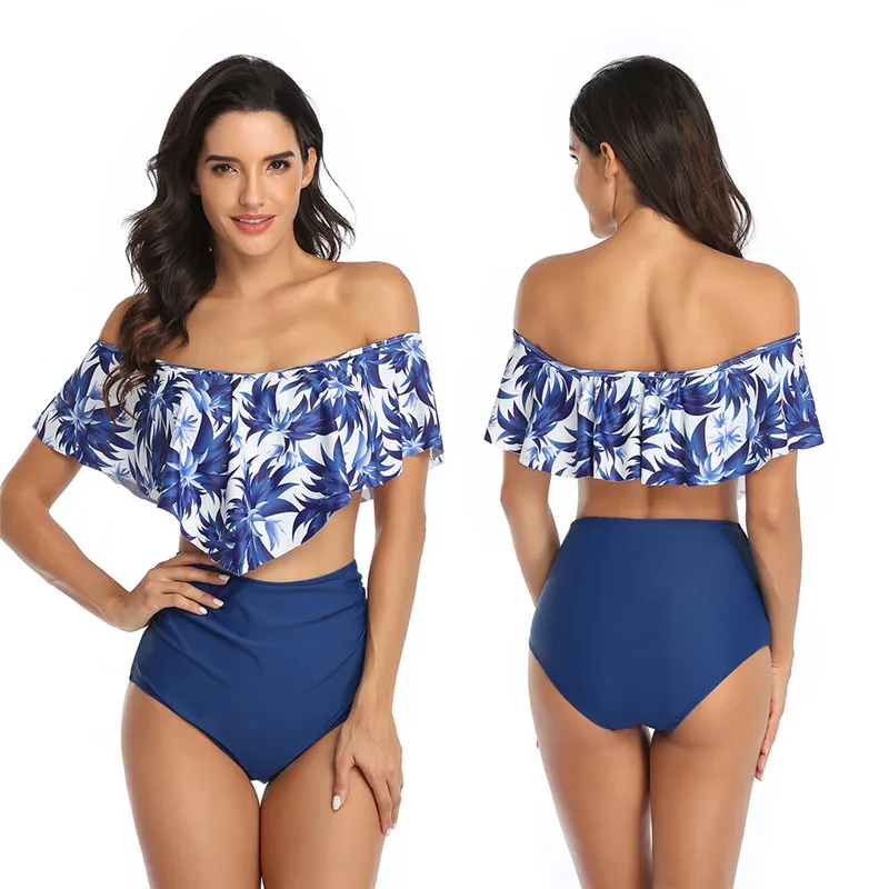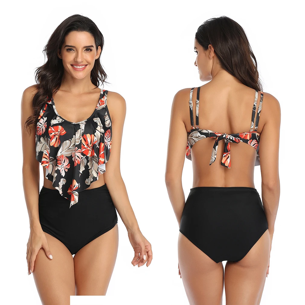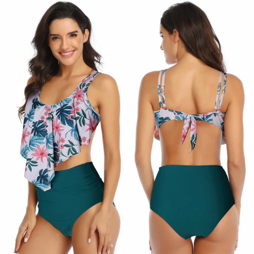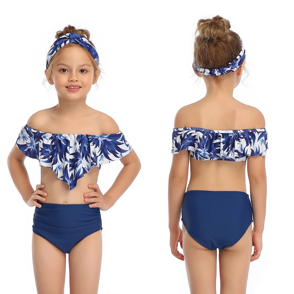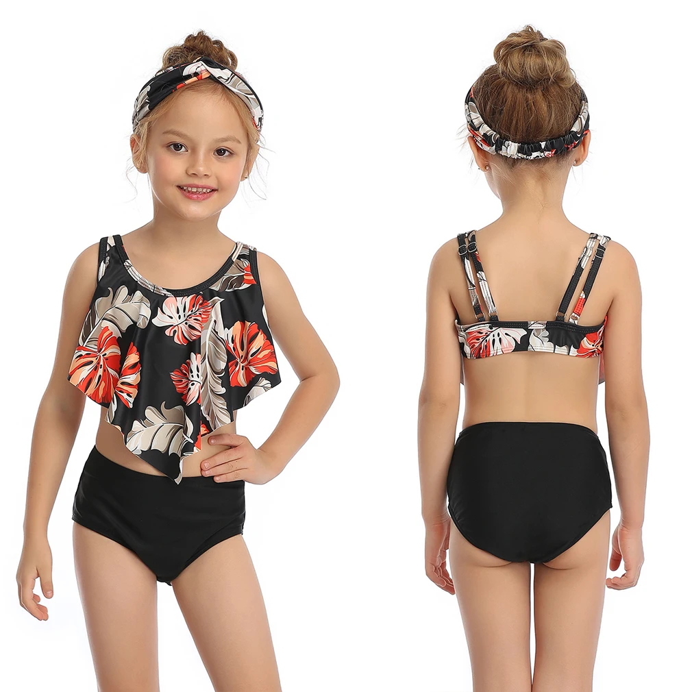 Одежда для купания для родителей и детей; женское детское бикини; коллекция 2020 года; семейный купальный костюм с высокой талией для мамы и дочки; пляжная одежда с цветочным принтом