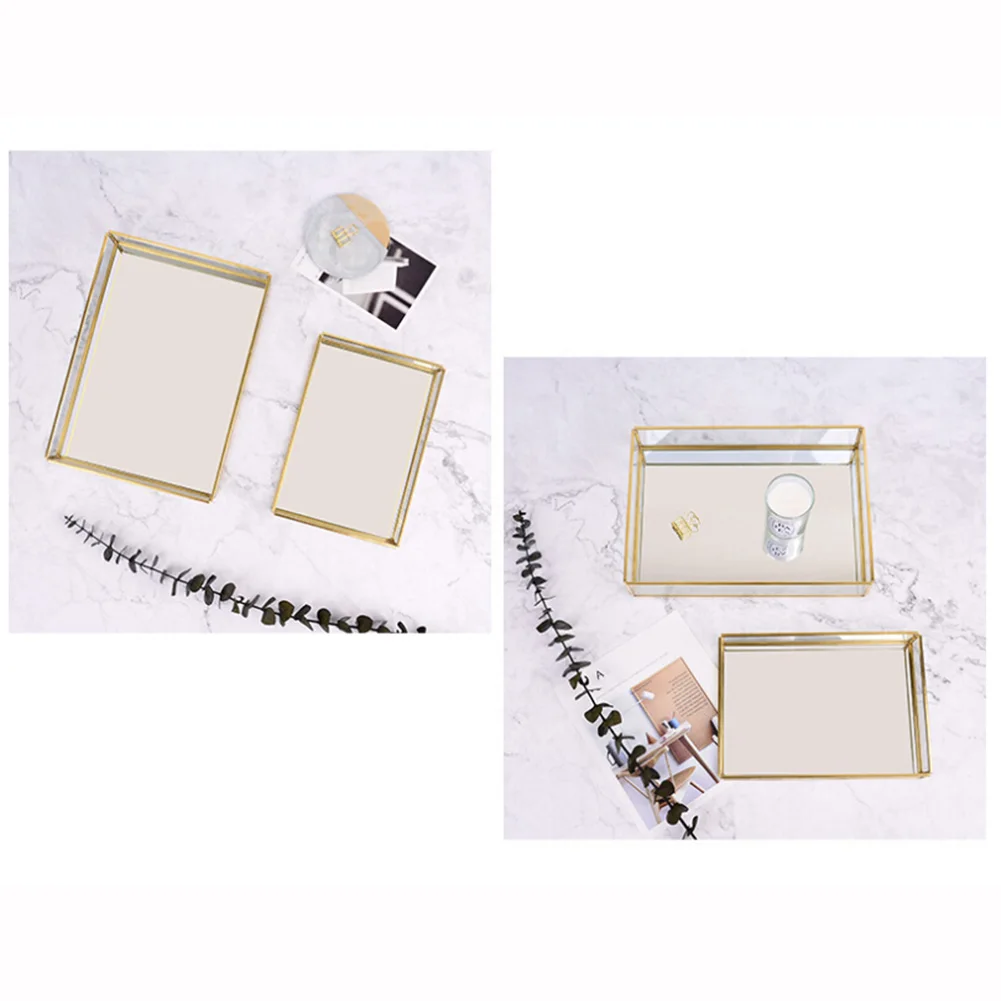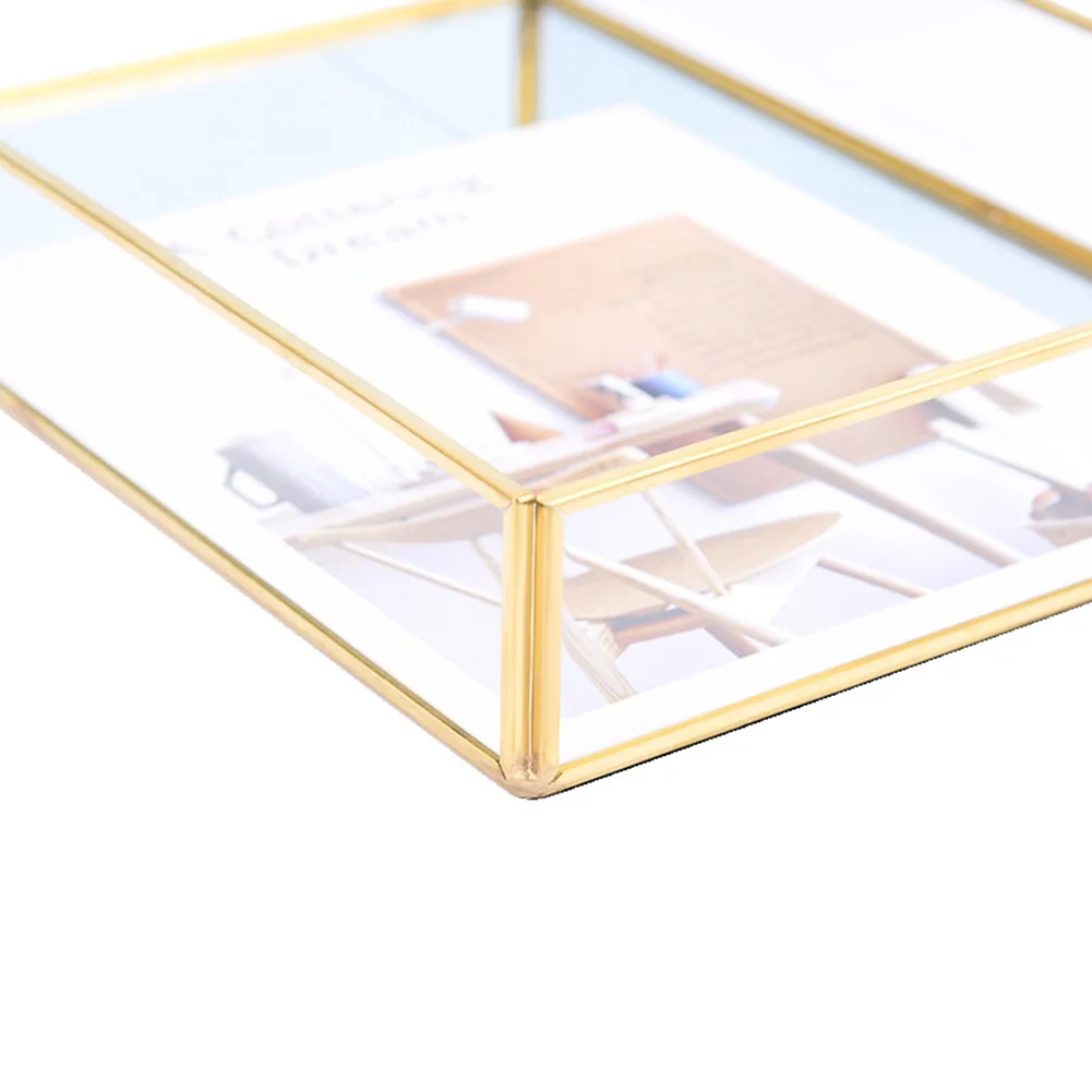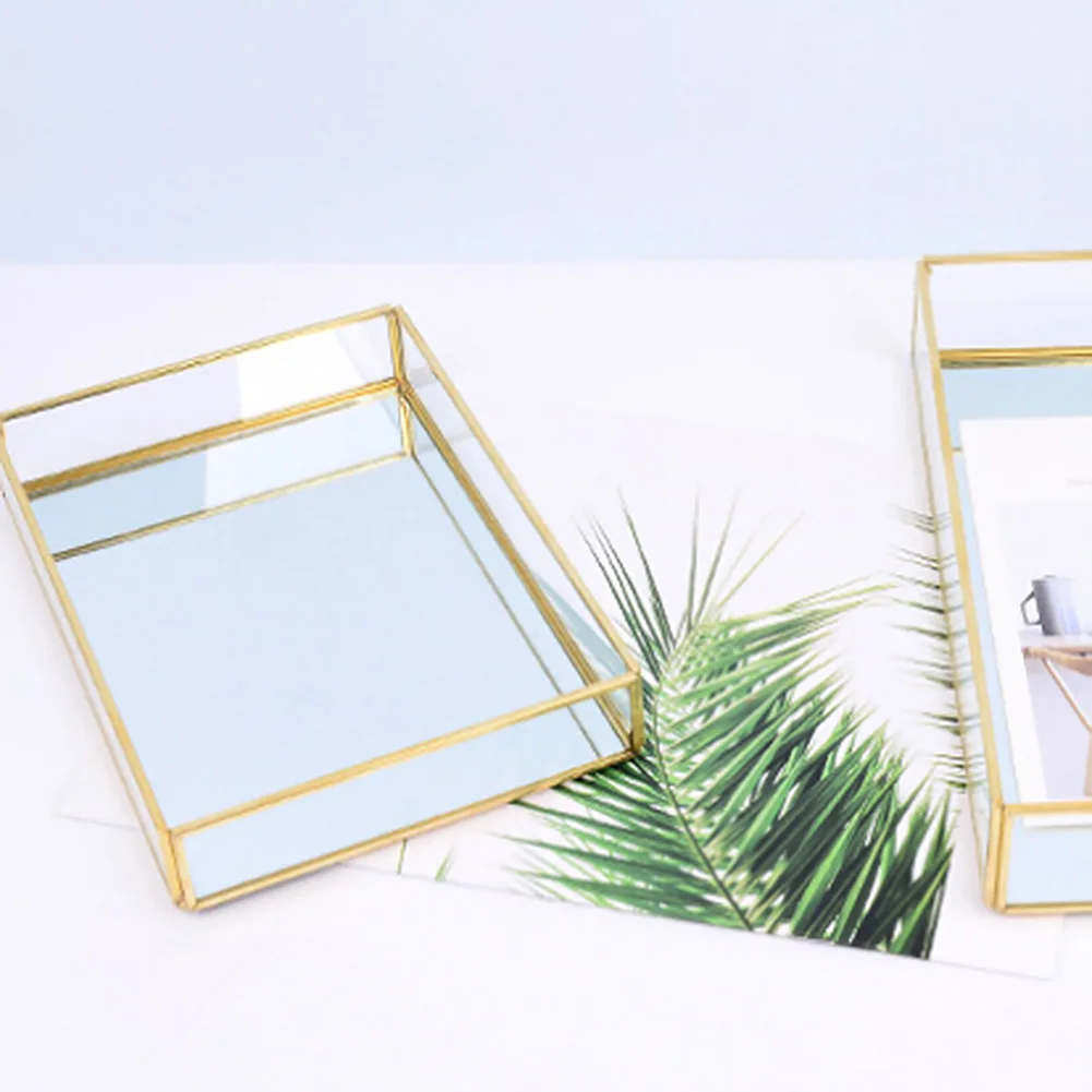 Поднос для хранения в скандинавском ретро-стиле, Золотой прямоугольный стеклянный органайзер для макияжа, тарелка для десерта, витрина для макияжа, Кухонное украшение для дома