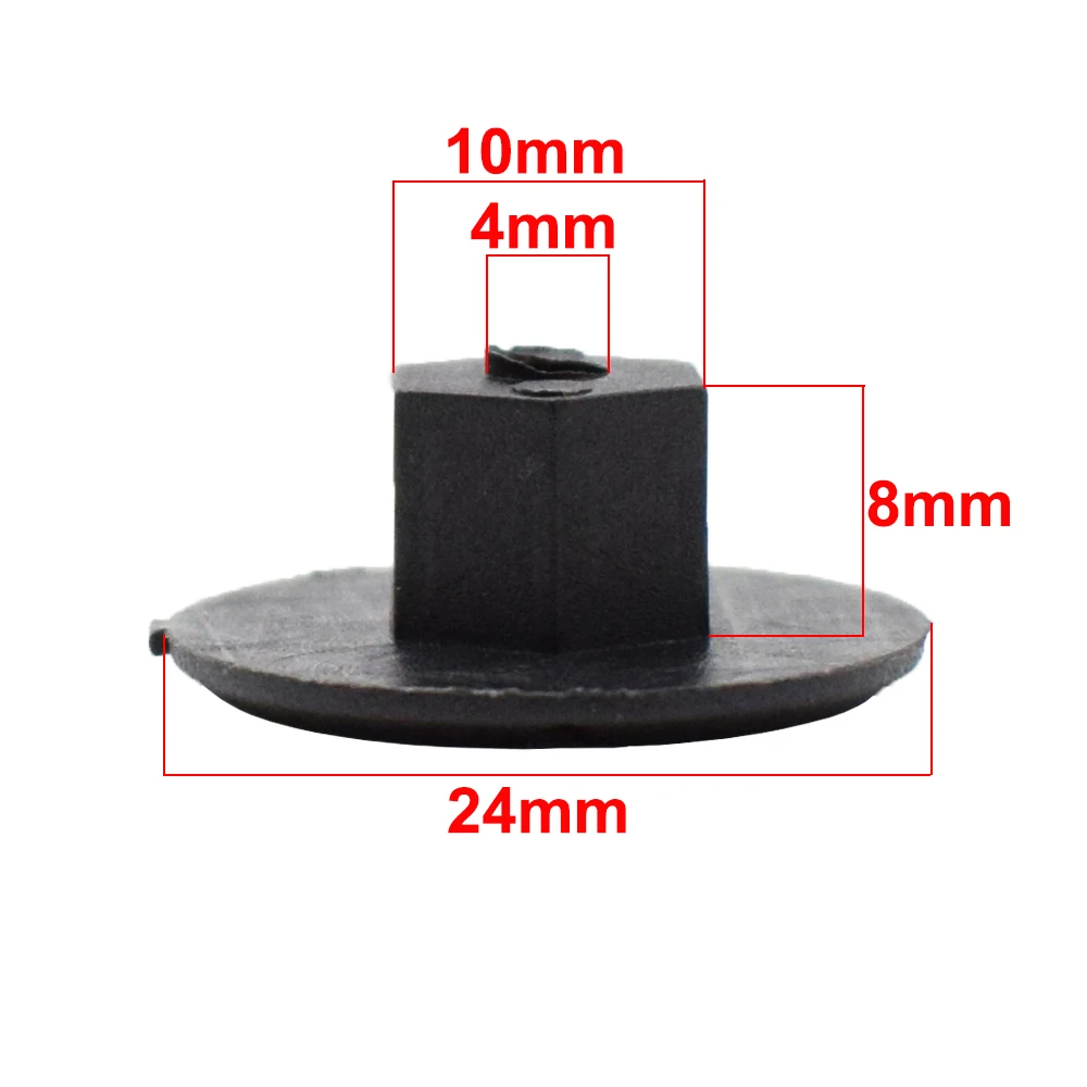 Технические характеристики:Материал: ПластикЦвет: черныйДиаметр головки (макс.): 24 мм (0,72 ")Длина стержня: 8 мм (0,24 дюйма)Диаметр отверстия: 4 мм (0,12 ") Посылка включает в себя:1 х Упаковка из 10