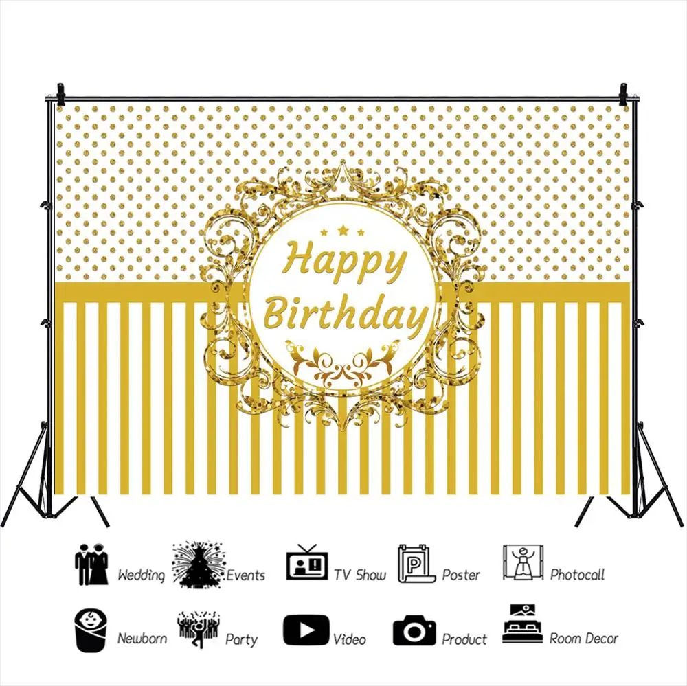 Laeacco Золотой Полосатый горошек с днем рождения цветочный узор детский постер индивидуальный Фотофон, фото декорации