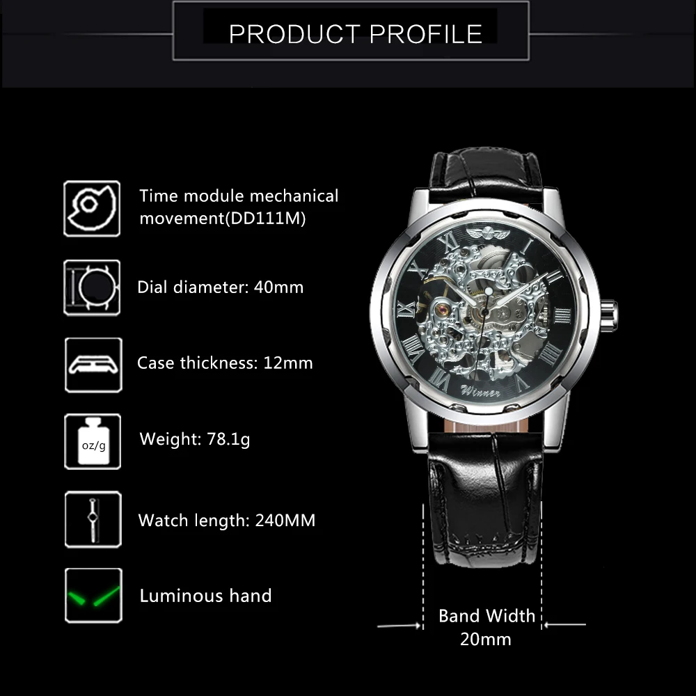 Manual InstructionMechanical watch needs shaking & winding to start(NO OVER WINDING!).