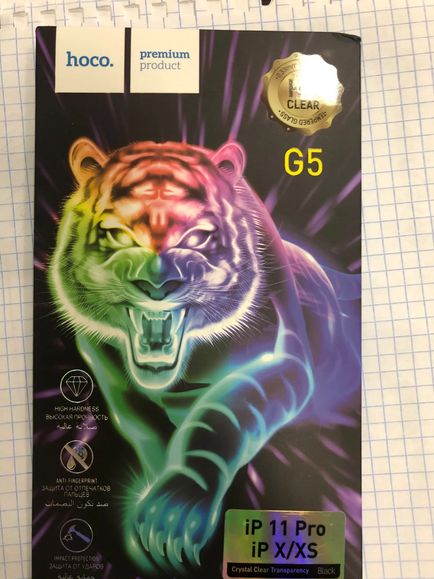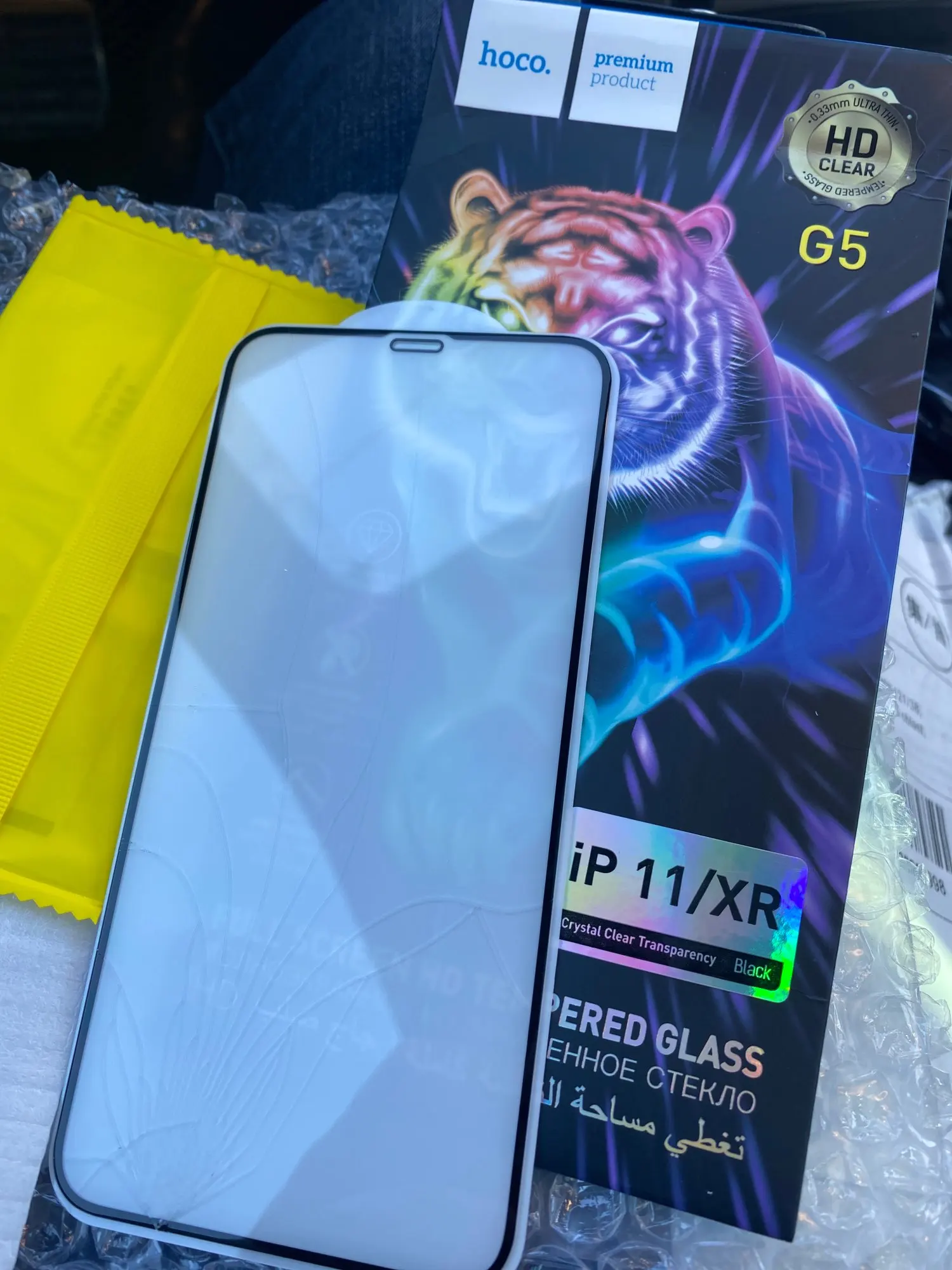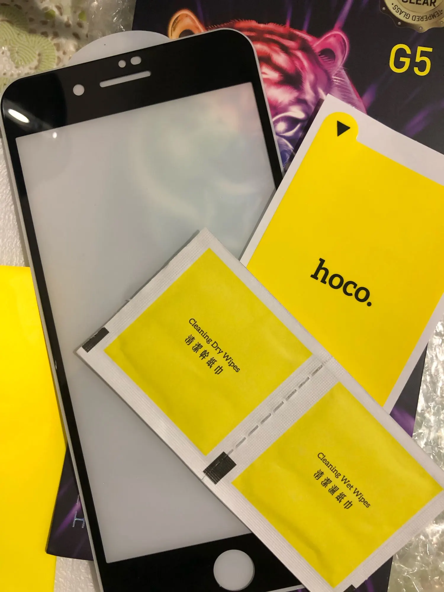 Не полностью покрывает стекло. Раньше у hoco покрывало. Нет тряпочки для протирки экрана, только салфетки. Раньше hoco всегда клали тряпочку. Хорошая большая наклейка от соринок, но маленьких нет. Если попадёт на экран в процессе поклейки, то достать уже не сможете скорее всего. Не уверена, что это оригинал. Посмотрим, как будет носиться