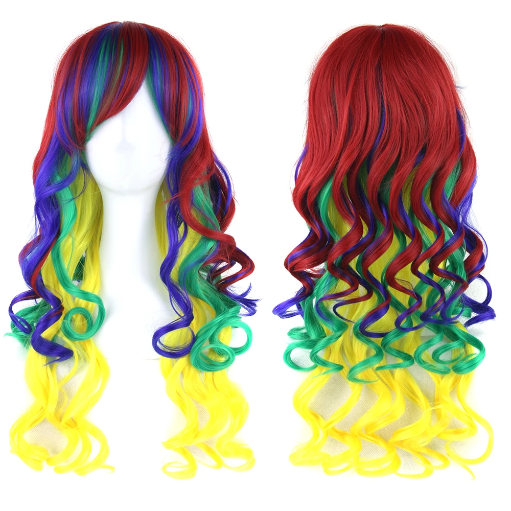Парики для косплея радужных цветов для женщин, термостойкие кудрявые искусственные волосы для косплея, с челкой