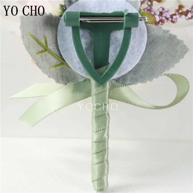 YO CHO, искусственные цветы, свадебная бутоньерка, Мужская брошь на пуговицах, булавки, свадебная бутоньерка на запястье, шелковые розы, вечерние, Свадебные бутоньерки