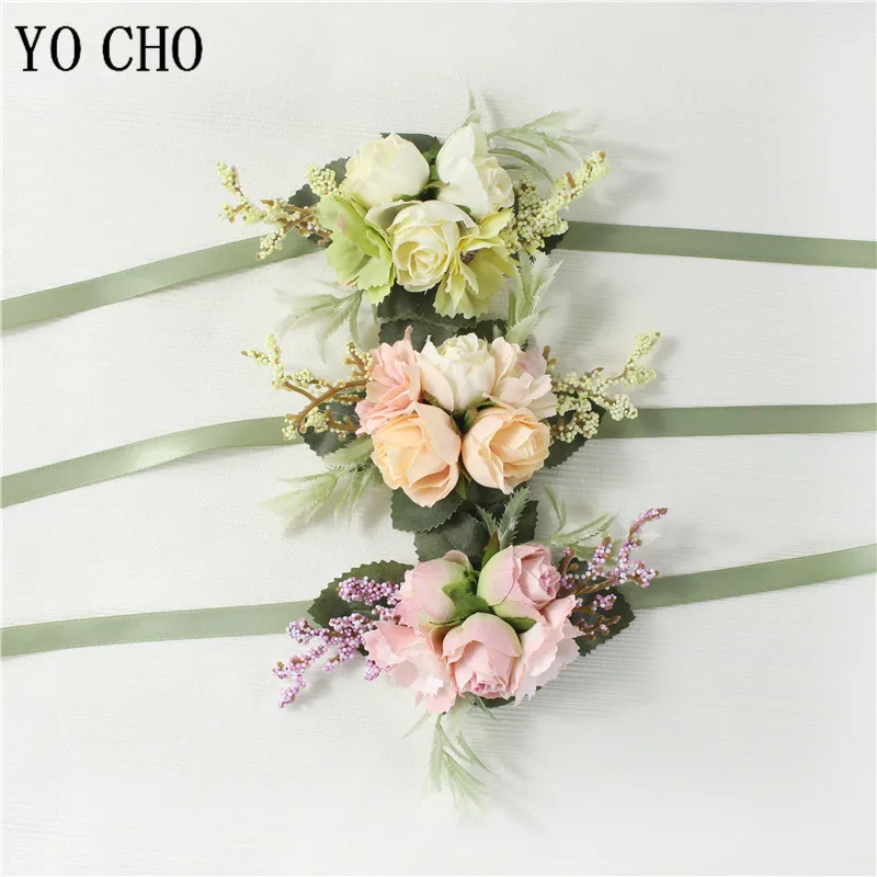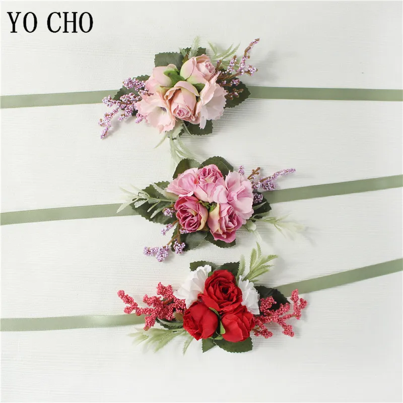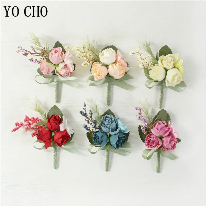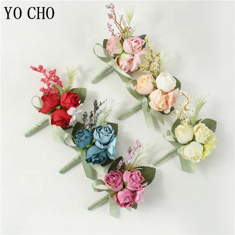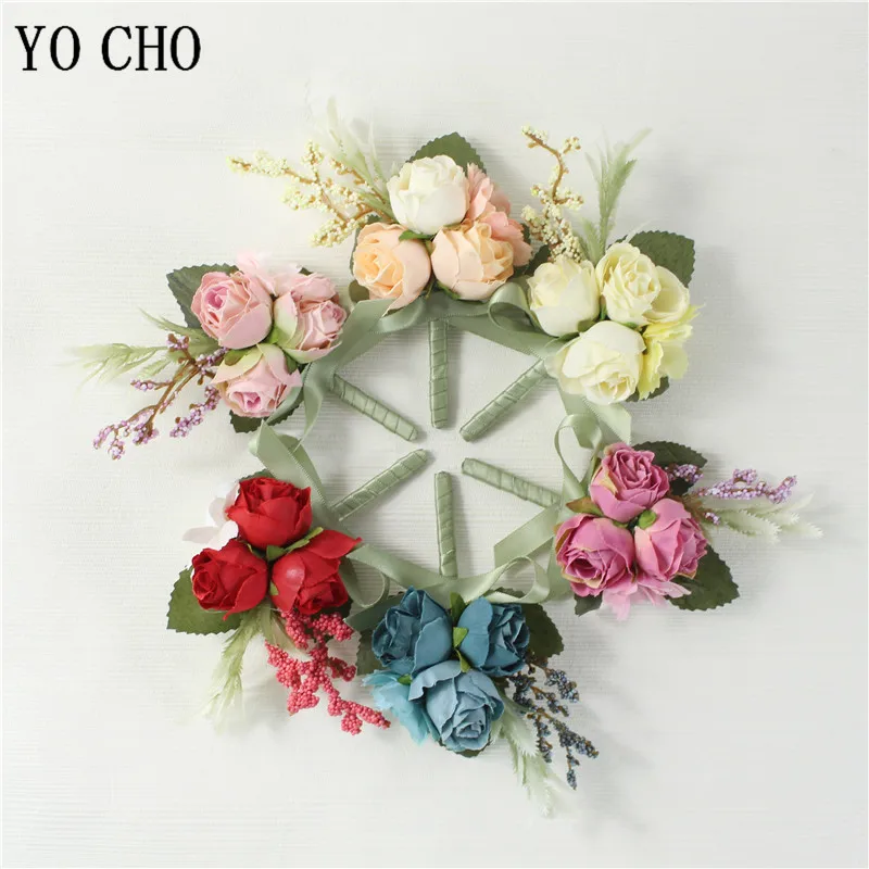 YO CHO свадебная бутоньерка с искусственными цветами, Мужская брошь на пуговицах, свадебная бутоньерка на запястье, шелковые розы, вечерние Свадебные бутоньерки