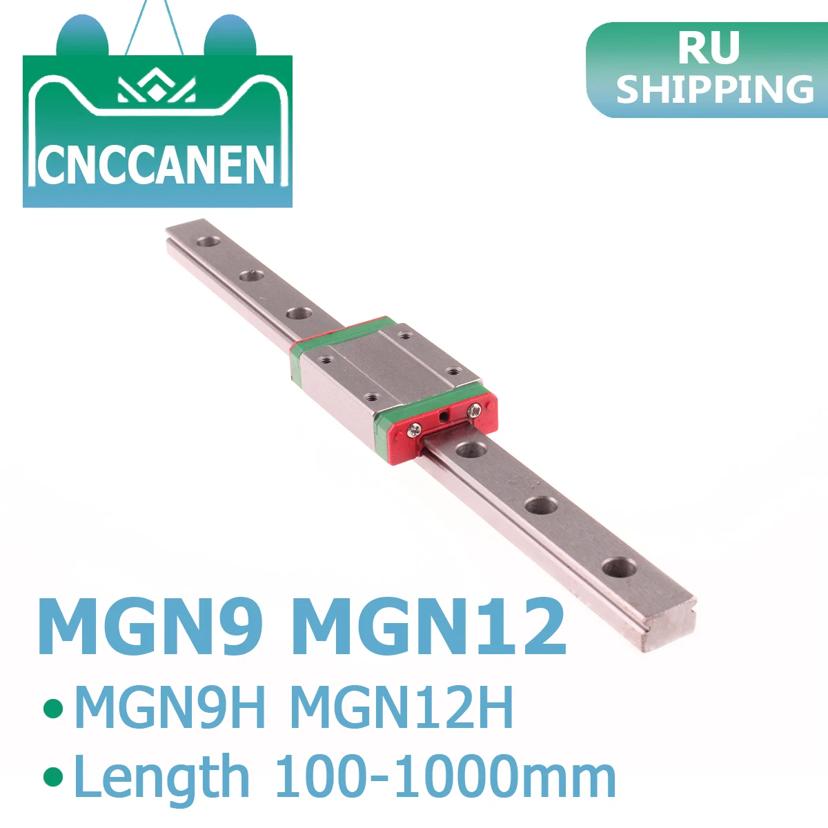 Миниатюрная линейная направляющая MGN для 3D принтера, MGN9, MGN12, 100-1000 мм, 300 мм, 600 мм, блок MGN9H, Каретка MGN12H, 1 шт.