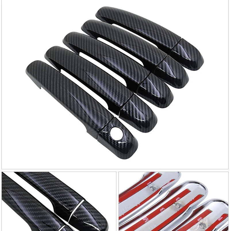 Глянцевые черные автомобильные дверные ручки из углеродного волокна...