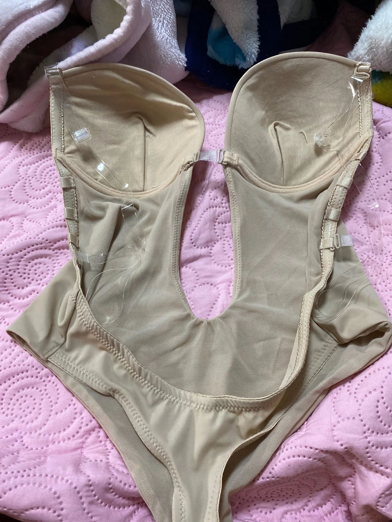 Боди корректирующее с глубоким V-образным вырезом и открытой спиной