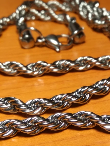 Это цепочка из лучшей стали, как описано, они хотели купить ее для меня. Этот магазин является для меня лучшим в стальных ювелирных изделиях, с контрастным качеством и хорошими ценами. Я рекомендую его, хотя 7 мм для человека с большой горловиной. Надеюсь, это поможет. Спасибо.
