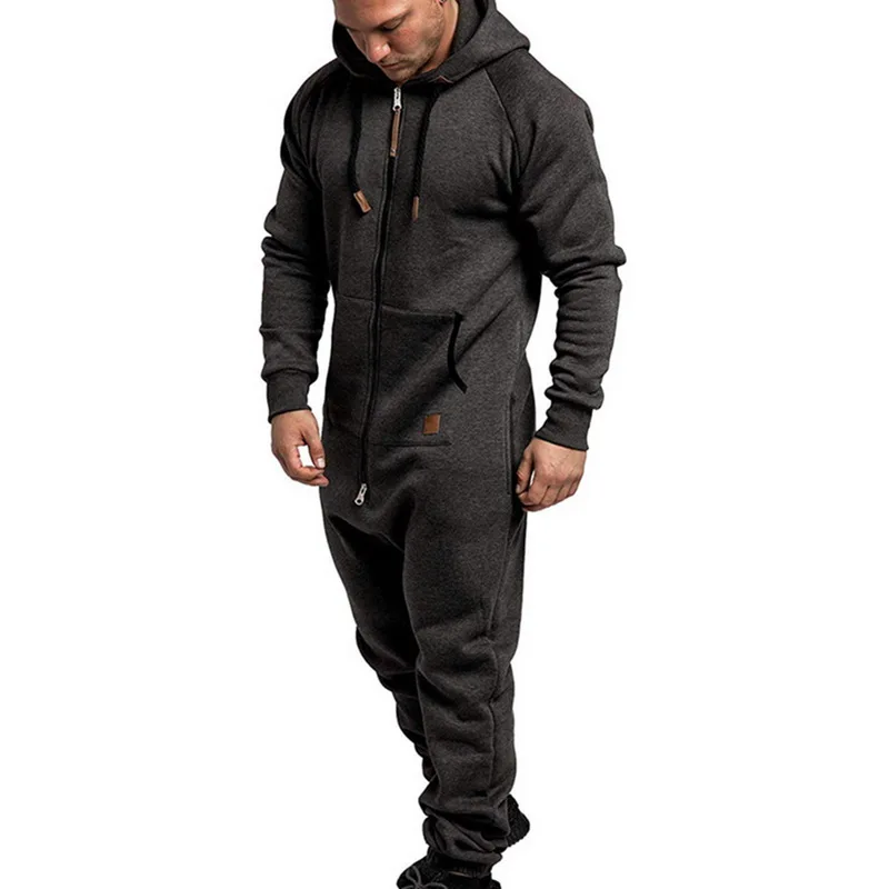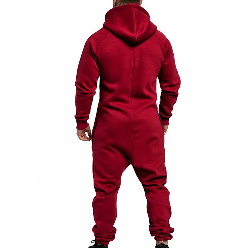 Мужской цельный комбинезон Gar, однотонная Пижама с капюшоном на молнии, модель 2020 года