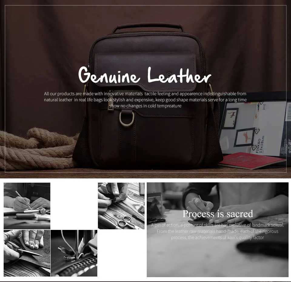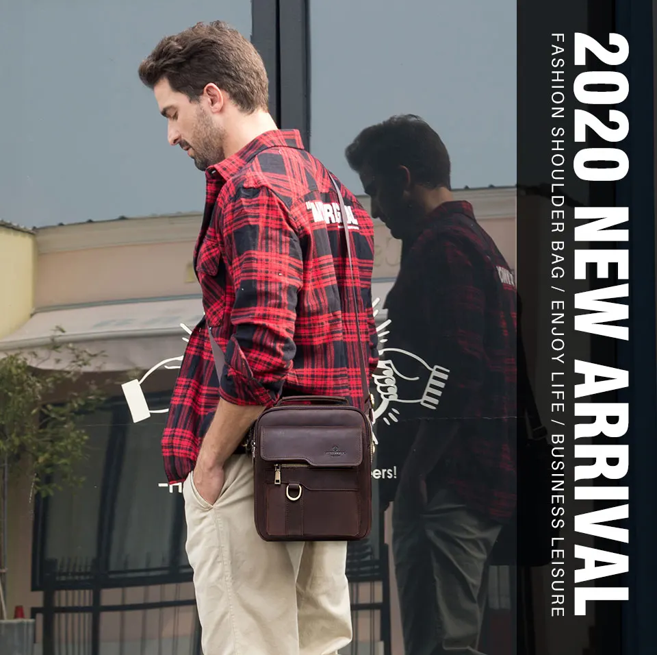 Мужская сумка через плечо KAVIS, повседневная сумка из натуральной ...