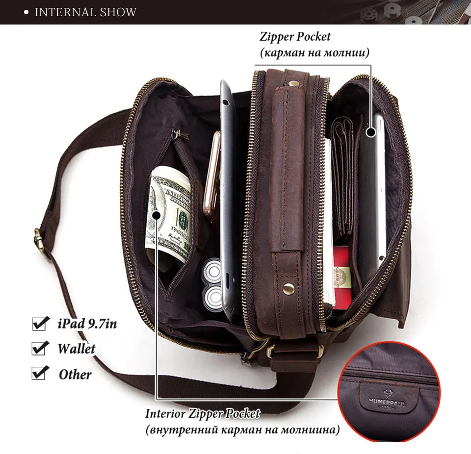Мужская кожаная сумка-мессенджер Crazy Horse, деловая Повседневная ...
