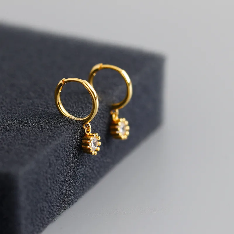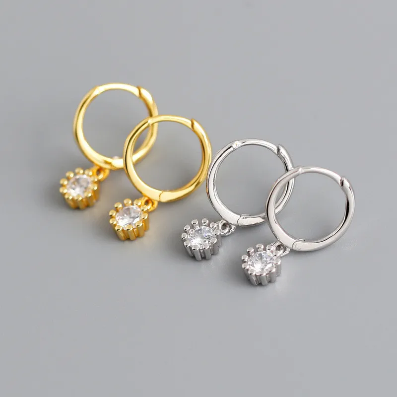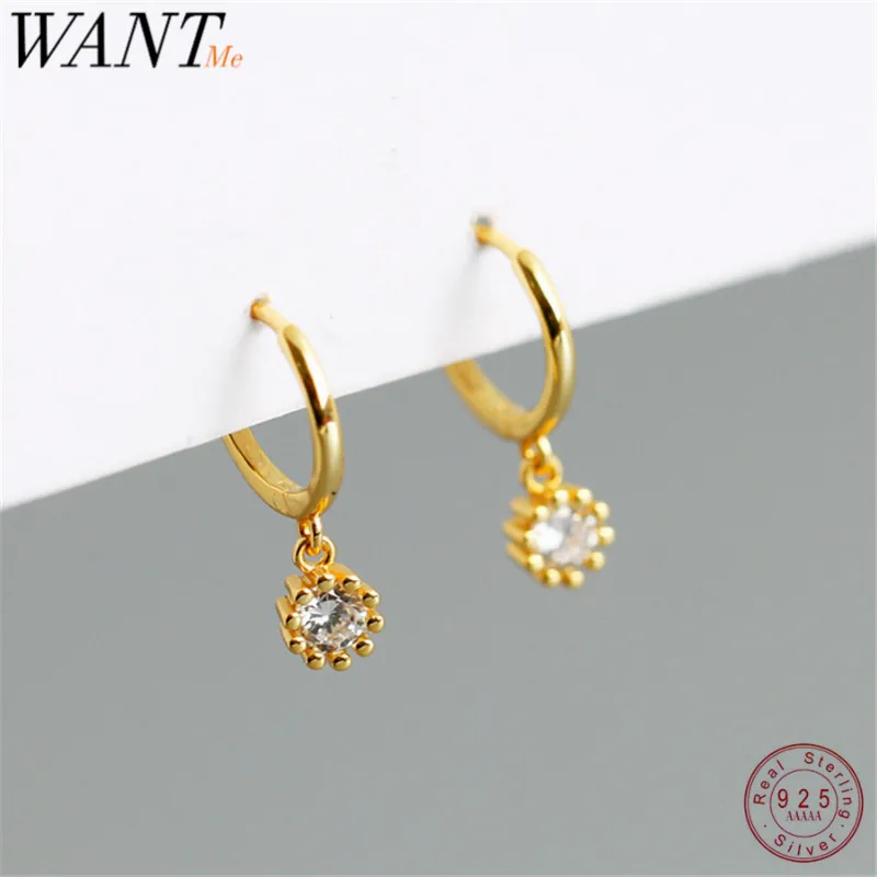 Женские серьги-кольца WANTME, из серебра цветок серьги-гвоздики пробы, с фианитами, 925 пробы