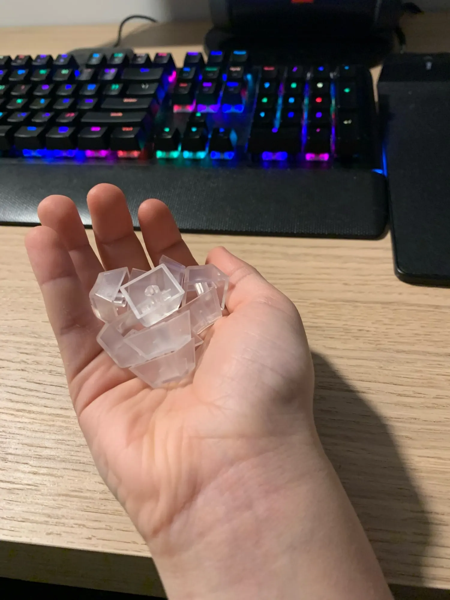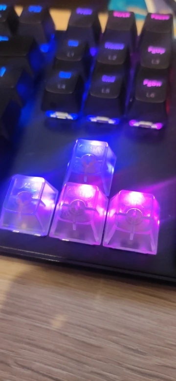 Отличные кейкапы, особенно для клавиатуры с подсветкой. Если подсветка не для красоты, а для индикации уровня, на котором находится клавиатура, то через прозрачные кейкапы её видно гораздо лучше.