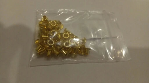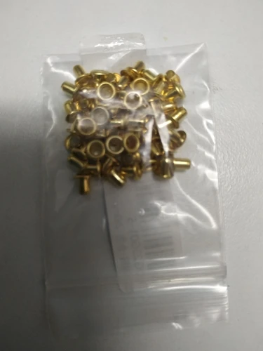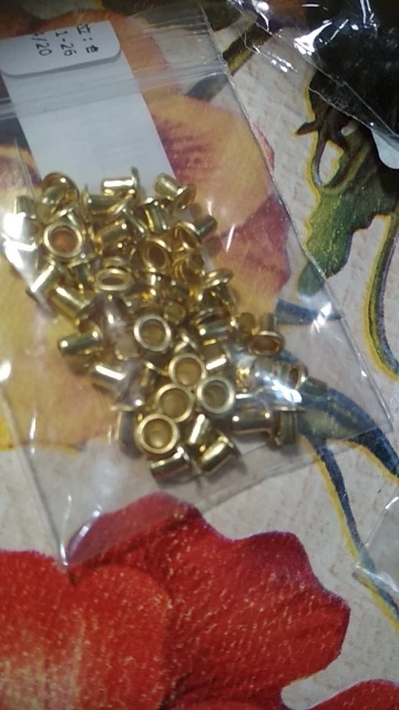 Товар соответствует описанию полностью. Цвет сочный золотой. В наборе 51шт. Цена на дату покупки 34,29руб.+доставка за 24,94 руб. Люверсы хорошо упакованы в почтовый конверт-пупырку и полиэтиленовый пакетик. Заказом довольна.