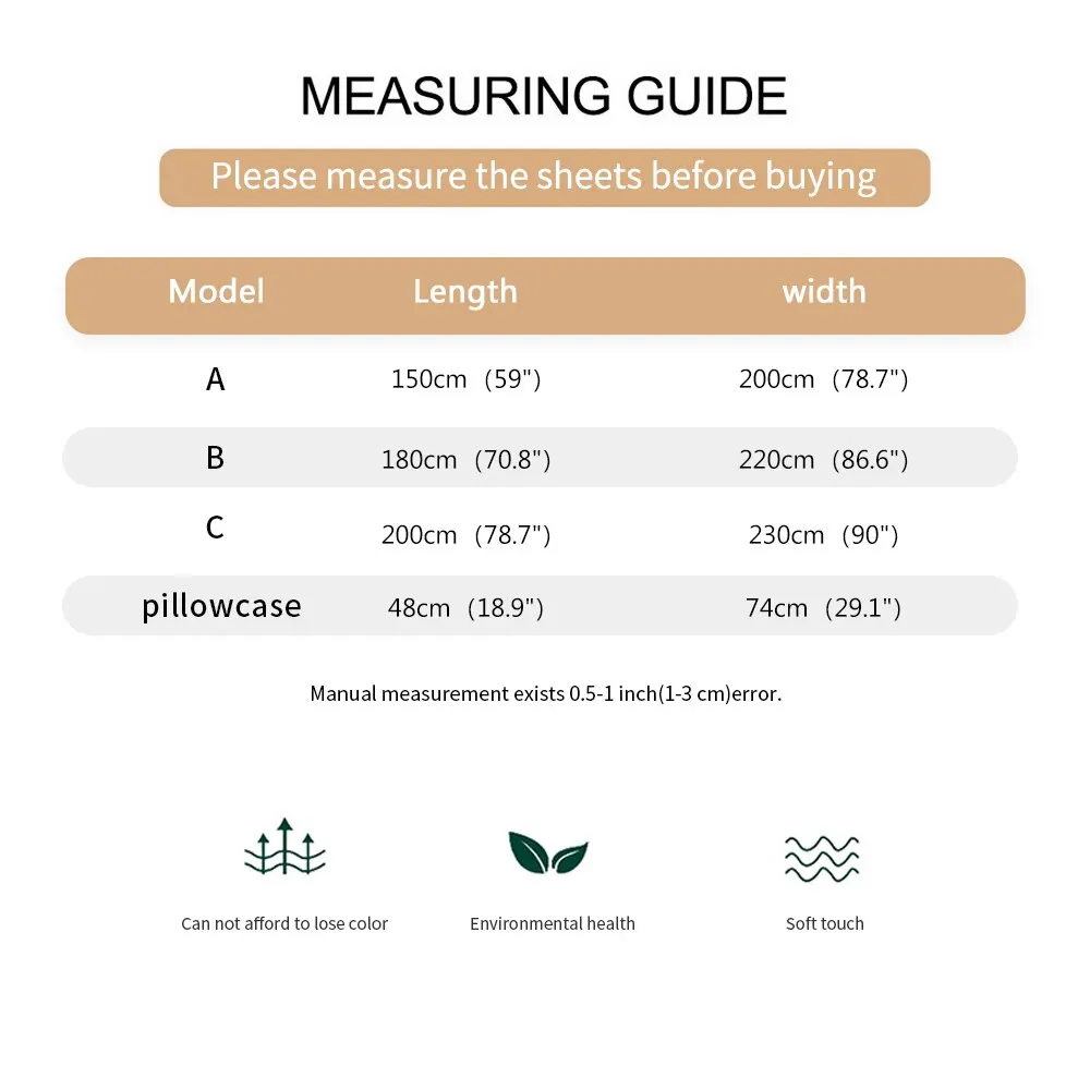 Цвет: верблюжий/зеленый/розовый/желтый/зеленый/кофейный/фиолетовыйРазмер:Пододеяльник:150 × 200 см180 × 220 см200 × 230 смНаволочка: 48 × 74 смМатериал: полиэстерПосылка: 1 пододеяльник/1 пара наволочек