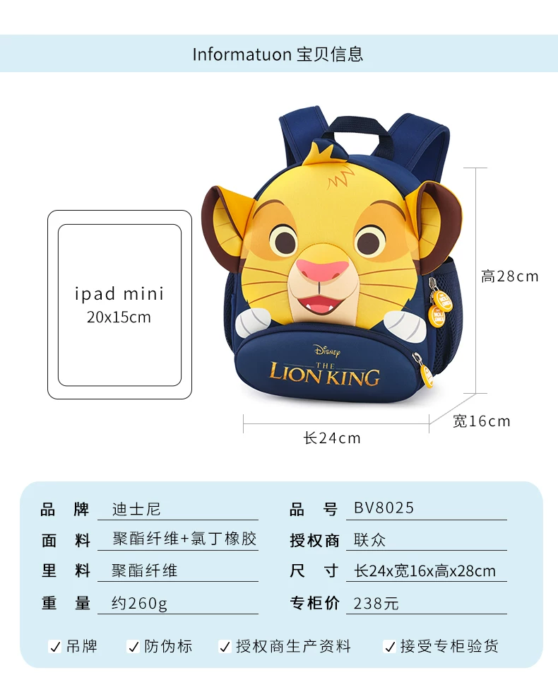 Новинка 2021, мультяшная сумка с симбой "Король Лев", Детский рюкзак с защитой от потери, дышащая сумка для детского сада, подарок на день рождения и Рождество