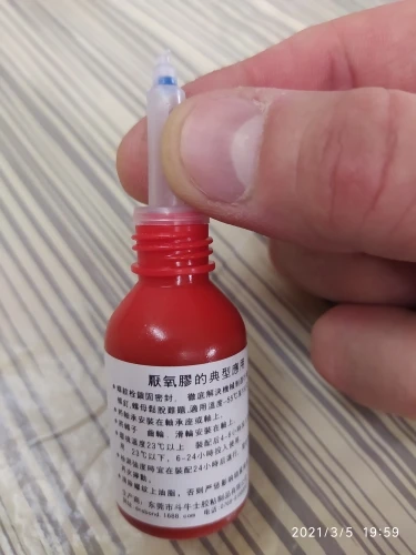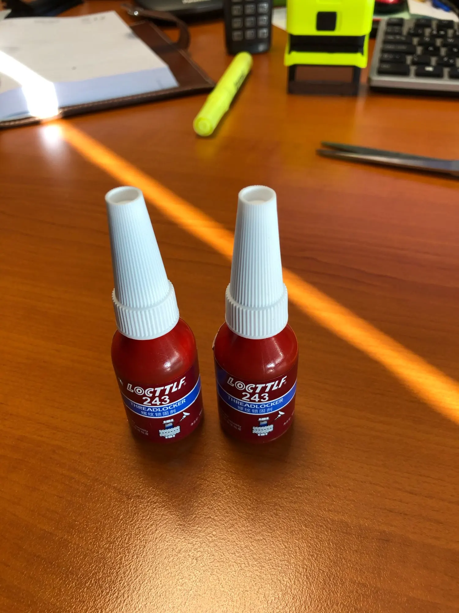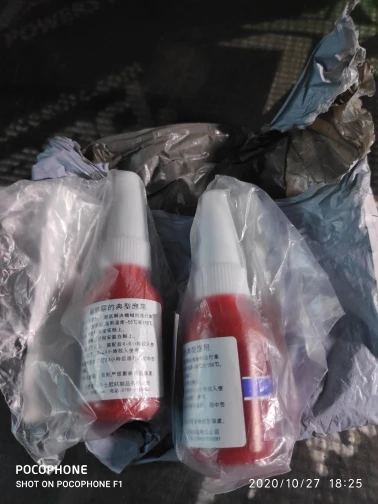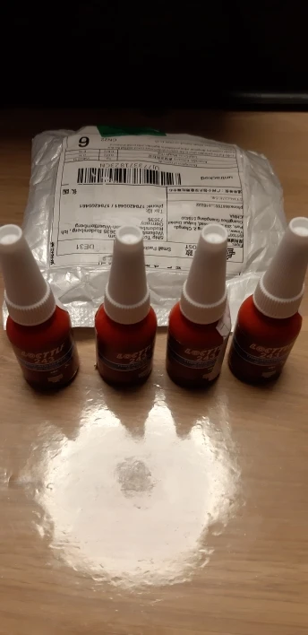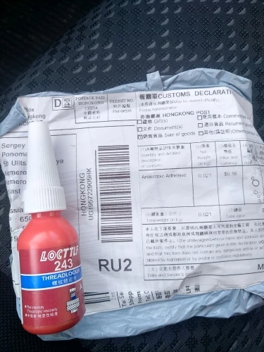 Доставка Москву 2,5 месяца. Посылка не отслеживается. Заказывал два вида по 10 мл: синий 243 и красный 271. В тюбиках дай бог чтобы 7 мл было клея. Фиксаторы работают на все 100 %. Синий чуть более вязкий, примерно как мёд. Красный как вязкое машинное масло. Использовал на болтах М8. Через 8 часов при комнатной температуре проверил эффект. Синий еле еле сорвал гаечным ключами на весу (в тисках или на изделии открутить было бы проще). Красный сорвать просто так ключами не смог, пришлось греть на газу. Сам клей после высыхания похож на отвержденный полиуретановый клей.