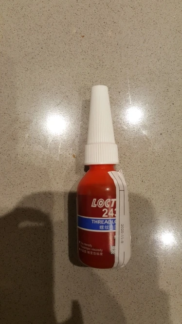 Отличная работа. Просто положите небольшую каплю и затяните болты/гайки. Протестировано через день после нанесения и гайка очень плотная, но может быть удалена ручными инструментами. Отлично подходит для предотвращения ослабления вибрацией.