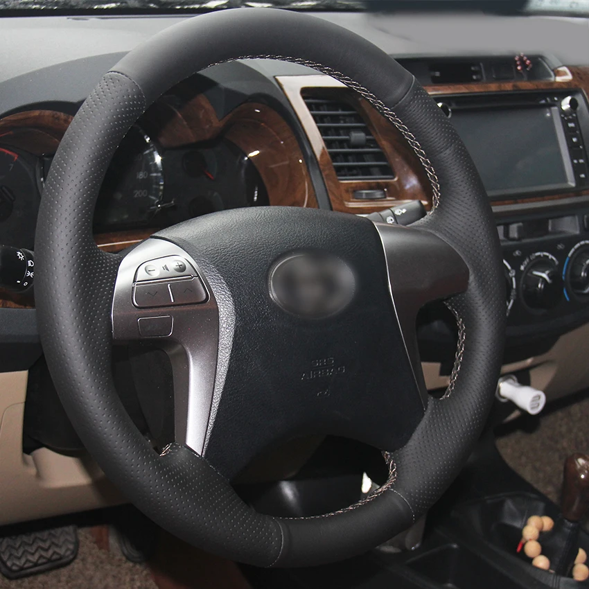 Автомобильные аксессуары, черный дышащий чехол рулевого колеса из искусственной кожи для Toyota Fortuner Hilux 2012 2013 2014 2015