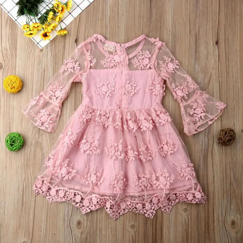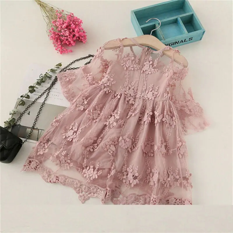 Летнее платье для девочек детская одежда из кружева Кружевное плать...