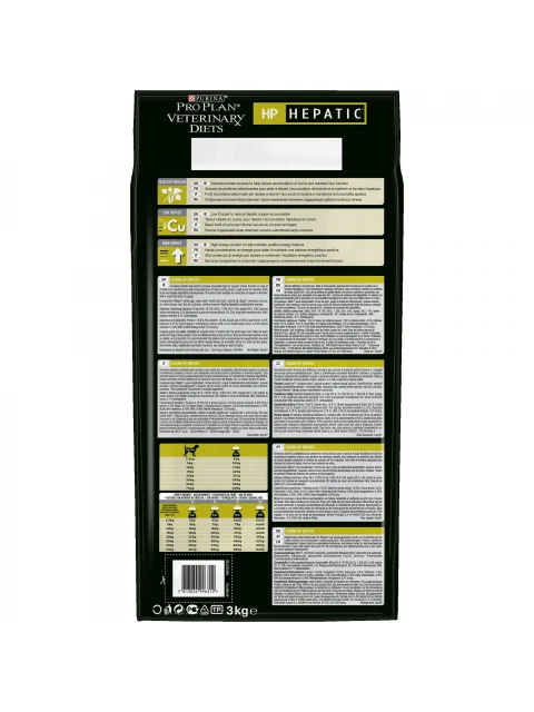 Pro Plan Veterinary Diets HP Hepatic - корм при нарушениях функций печени у взрослых собак и щенков старше 14 недельПреимущества корма:Ограниченные источники белка.Низкое содержание меди.Высокое содержание энергии.Показания:Нарушение функции печени.Воспаление печеночной ткани.Портосистемный шунт.Нарушение метаболизма меди.Восстановление после пироплазмоза, бабезиоза. Противопоказания:Ранний этап развития, беременность.Воспаление поджелудочной железы.Гиперлипидемия.