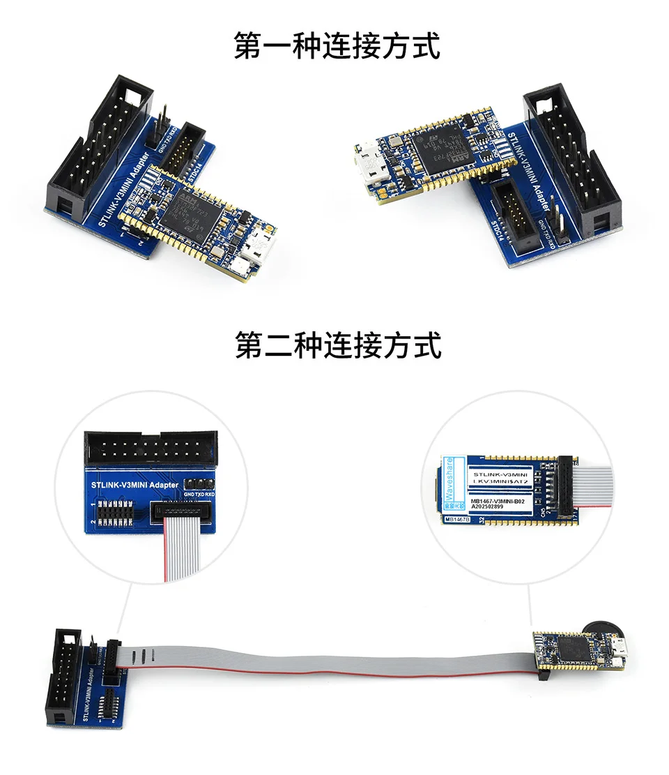 Метод подключения B: подключение к целевому приложению через STLINK-V3MINI плату адаптера.