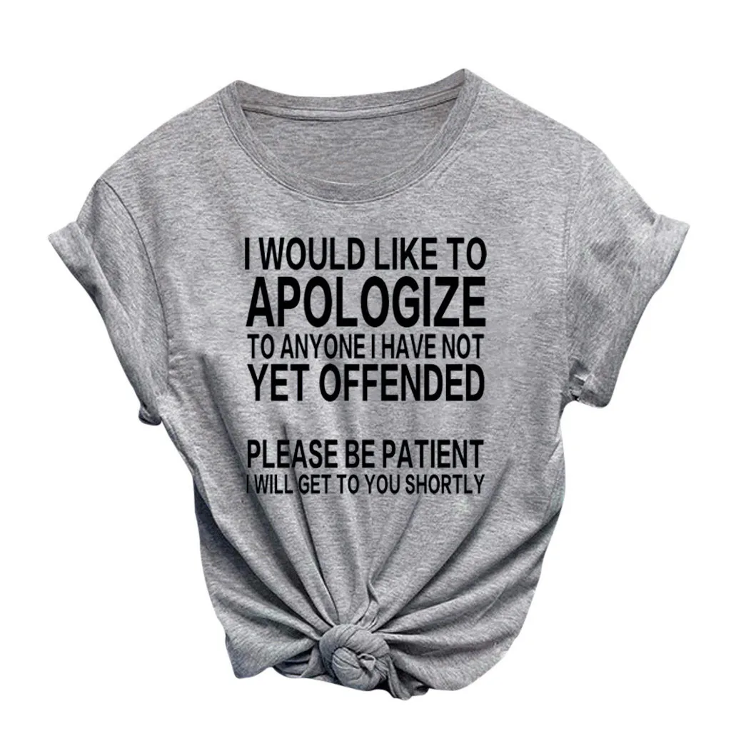 Больше я хотел бы извиниться, женская футболка с буквенным принтом,...