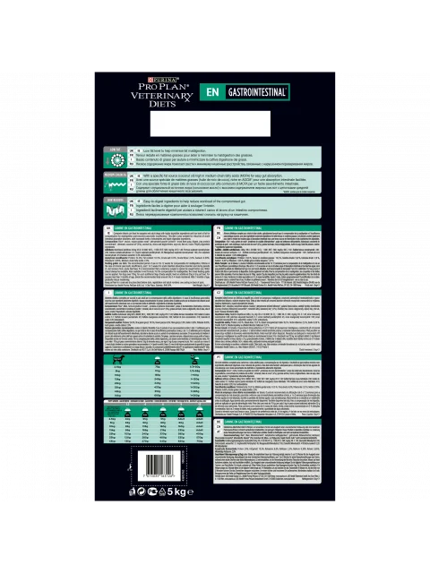 Pro Plan Veterinary Diets EN Gastrointestinal - корм при нарушениях работы желудочно-кишечного тракта и экзокринной недостаточности поджелудочной железы у собак. Преимущества корма:Низкое содержание жиров.Содержит кокосовое масло с высоким содержанием среднецепочечных жирных кислот, обеспечивающих легкопереваримый и усвояемый источник энергии.Предотвращение накопления токсинов.Показания:Острая или хроническая диарея.Воспаления желудочно-кишечного тракта.Нарушение всасывания и/или нарушения перевариванияНарушение ферментативной функции поджелудочной железы.Расширение лимфатических сосудов в кишечнике.Лимфангиеэктазия.Воспаление поджелудочной железы.ГиперлипидемияПротивопоказания:Нет.