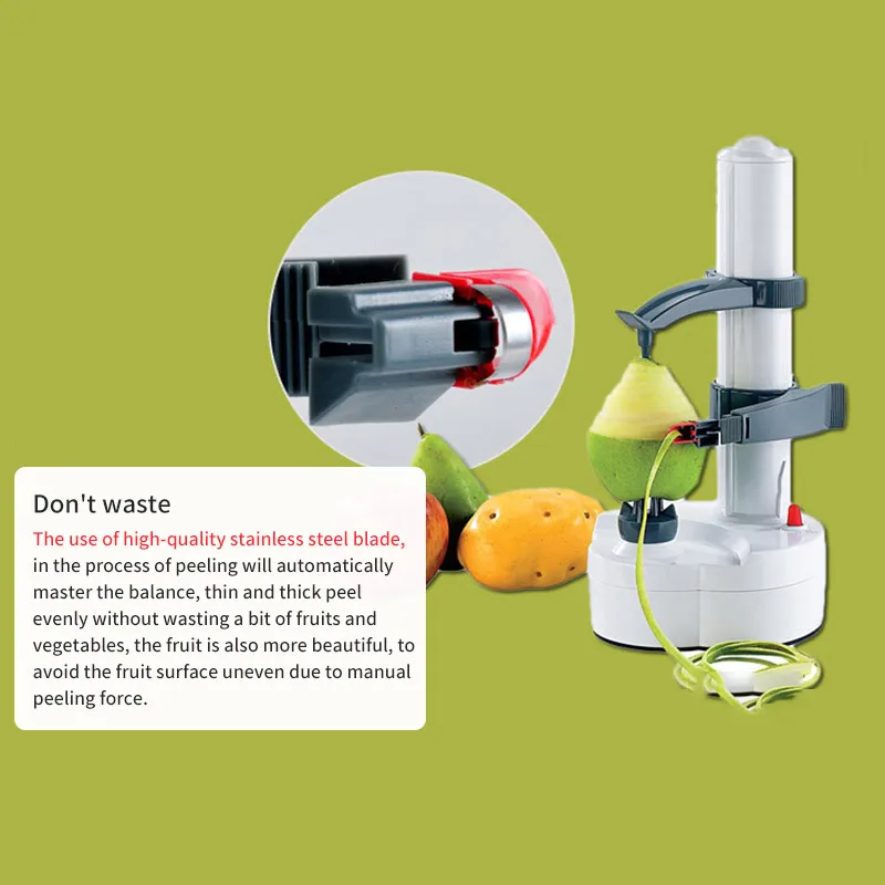 Автоматический и удобный Гуманизированная конструкция кнопки, просто аккуратно нажмите, начните пилинг автоматически. Подвижная фиксированная игла может адаптироваться к разному росту овощей и фруктов. Robotized arm может регулировать толщину и автоматический баланс в процессе пилинга, равномерно сохраняет толщину. Нескользящее основание и острое лезвие Выберите высококачественное лезвие из нержавеющей стали, быстрее нарезайте фрукты и овощи. Это просто спаривает кожу, не тратя ни одной питательной части. Прочная нескользящая основа из АБС-пластика сохраняет устойчивость на столе или в другом рабочем месте. Два режима питания Полезная машина для очистки овощей может работать не только с 4 * батареями AA (не входят в комплект), но также может использоваться с зарядным устройством, заряжаясь при использовании. (Этот элемент не включает адаптер питания.) Сильная мощность, высокая эффективность работы. Дополнительные аксессуары Поставляется с 2 * сменными лезвиями, все вышеуказанные инструменты интенсивно хранятся под овощечисткой. Удобно иметь доступ ко всем компонентам. Не нужно покупать дополнительные лезвия, Экономьте свои деньги. Подходит для многих фруктов и овощей Электрическая Овощечистка может очищать картофель, сладкий картофель, помидоры, кабачки, яблоки, груши, апельсины, лимоны, хурму, манго, огурец и некоторые другие гладкие твердые фрукты и овощи. Характеристики: Тип: электрическая овощечистка Количество: 1 шт. Материал: нержавеющая сталь + ABS Цвет: зеленый/белый/черный Источник питания: штекер или аккумулятор 4 * AA (не входит в комплект) Мощность: DC 6V, 0.5A Размер: 29*14*14 см/11,4*5,5*5,5 дюймов Вес нетто: 644,0 г/22,72 унций Посылка: 1 * электрическая овощечистка 2 * лезвия