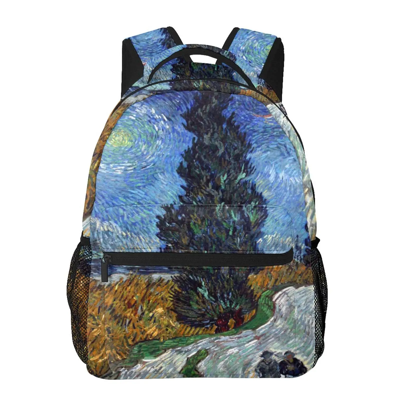 Рюкзак, Повседневная сумка для путешествий с изображением дерева Ван Гога, школьная сумка с черными и красными точками для танцев, женская сумка на плечо для девочек-подростков
