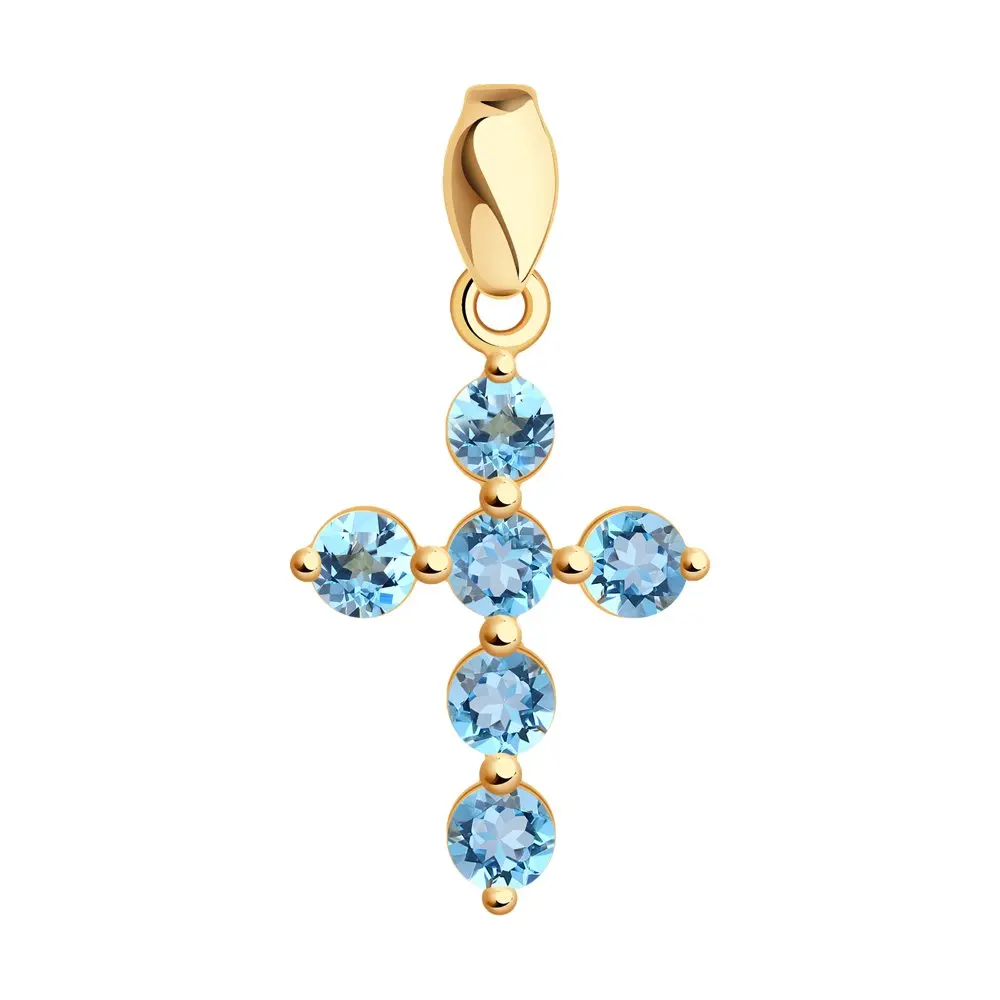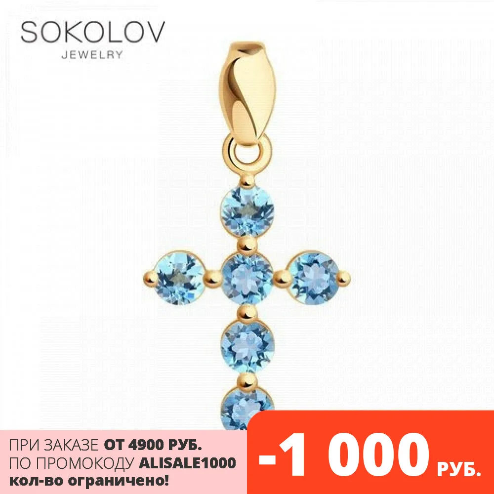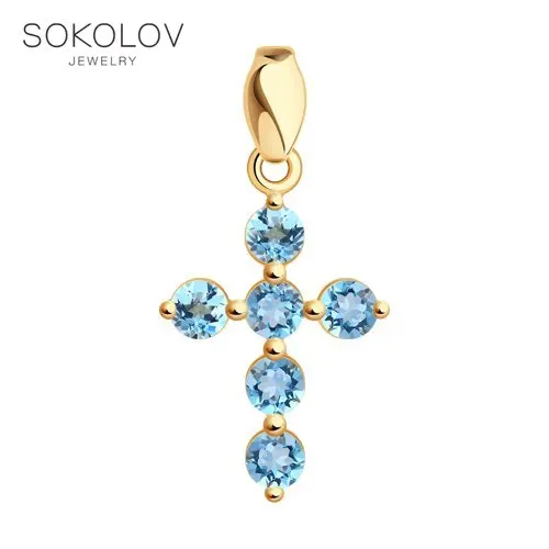 Крест SOKOLOV из золота с топазами, Золото, 585, Оригинальная продукция