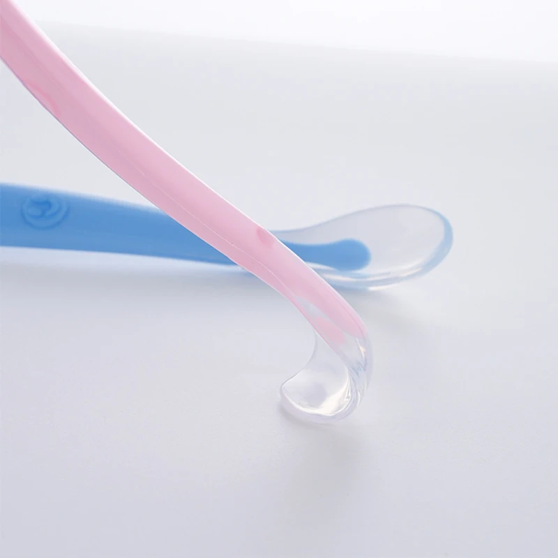 Детская Мягкая силиконовая ложка для кормления, столовая посуда, ложка с датчиком температуры, конфетных цветов, детский инструмент для кормления