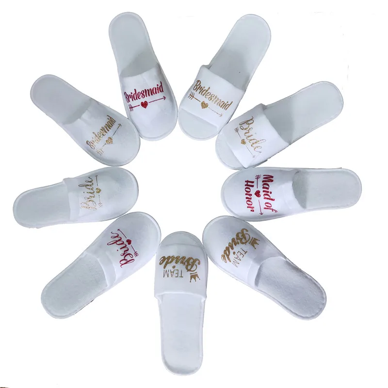 Золотые одноразовые Тапочки Свадебные украшения Команда Невесты мягкие спа тапочки свадебный подарок подружке невесты девичник вечерние украшения-S