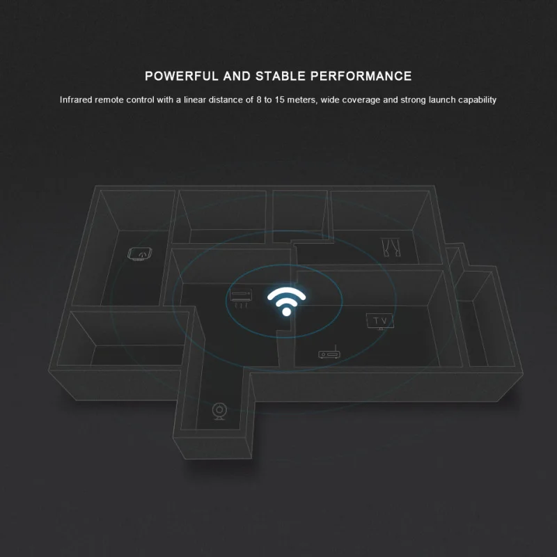 Это настоящий универсальный пульт дистанционного управления со следующим Поддержка 80000 + телевизоров, кондиционеров, аудио... Автоматическое обновление кодов из облака Автоматическое соответствие устройства без обучения Поддержка беспроводных устройств 433 МГц Управление приложениями iOS/Android из любого места Режим Home/away, Режим сна/пробуждения, режим родителей и режим безопасности Ультра сила сигнала и покрытие на 360 градусов Поддержка всех ИК-устройств, таких как телевизор, кондиционер, DVD и т. Д.