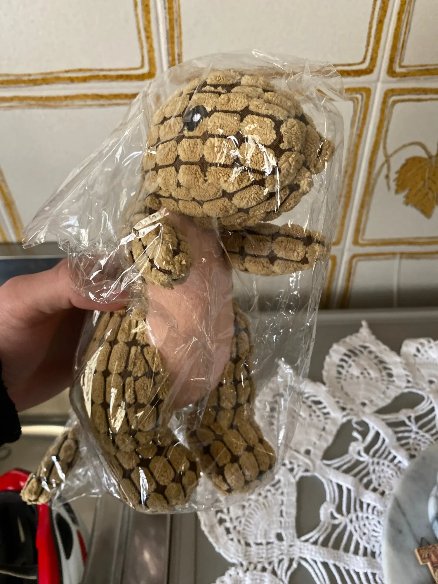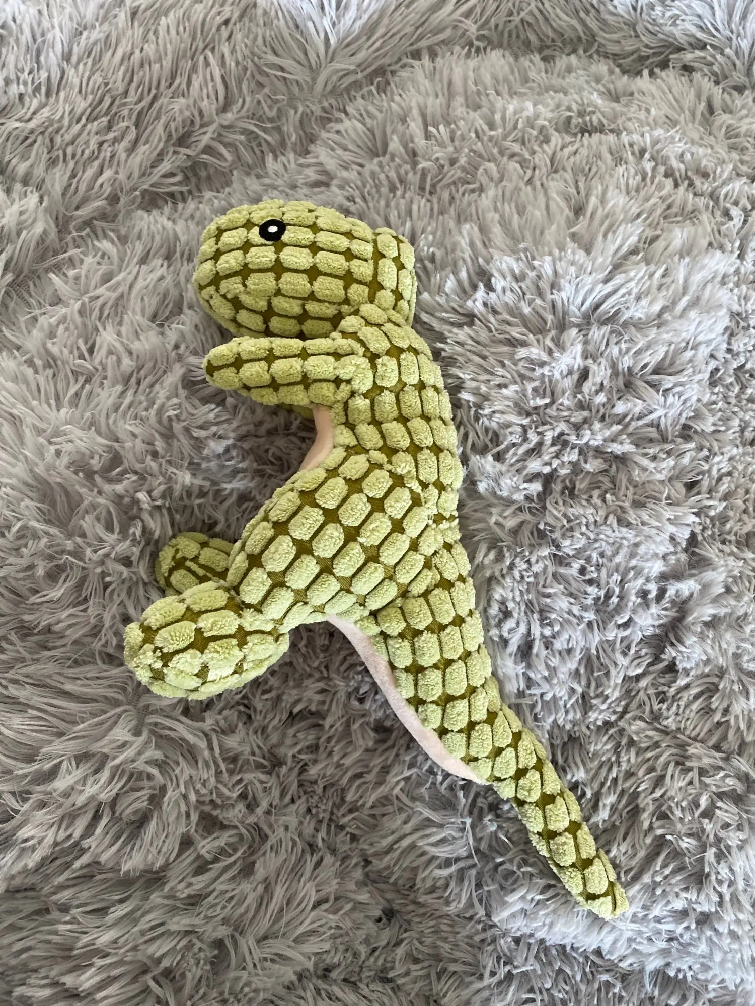 Заказала зеленого динозавра. Пошит он так себе. Пузико не белое, а персиковое. Хвост кривой, сшит как попало. Пищалка работает плохо, почти не слышно. Еле нашла её. Открыла спор, мне начал звонить продавец в ватсапе. Потом начал давить, что я должна закрыть спор, а он мне вернет 1 доллар. Алиэкспресс решил, что я должна игрушку вернуть им, и тогда мне вернут деньги. А возврат мне обойдется дороже чем игрушка. Не рекомендую продавца. Не рекомендую товар.
