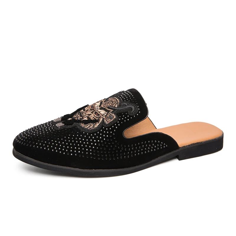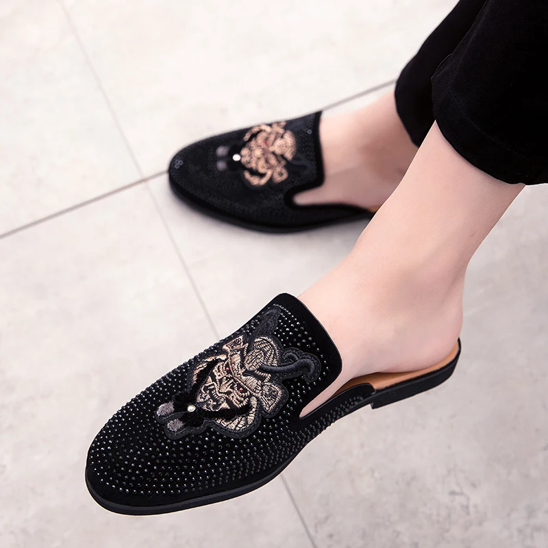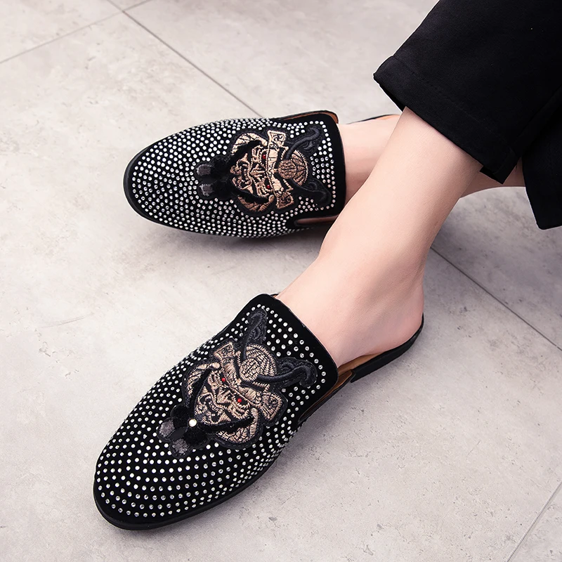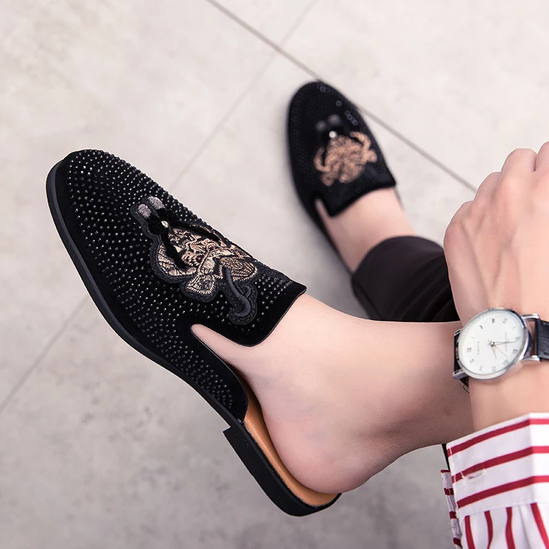 Мюли мужские замшевые, полуботинки, стразы, роскошная модная повседневная обувь