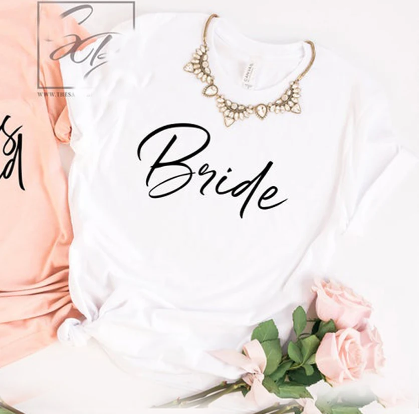 Подружка невесты короткий рукав Женская хлопчатобумажная рубашка Повседневная девичник вечерние рубашки Свадебные командные Топы Ulzzang Прямая поставка