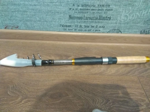 лёгкая палочка,но рукоять по моему коротковатая,думаю добавить немного,хорошо что есть отвинчивающаяся пробка.просто вставлю отрезок лыжной палки и станет жёсткая,посылистая трость.для твичинга сгодится.удобная форма для перевозки.