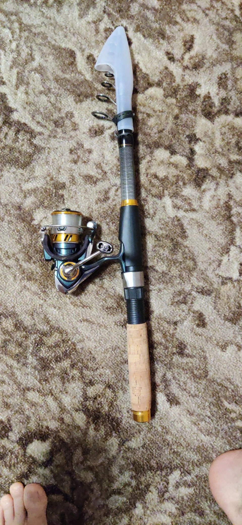 отличная удочка строй быстрый в деле еще не скоро проверю тк зима в подарок 3 резиновые рыбки кольца маленькие хз на что влияет))