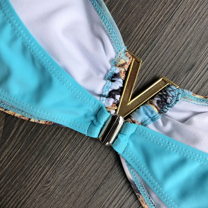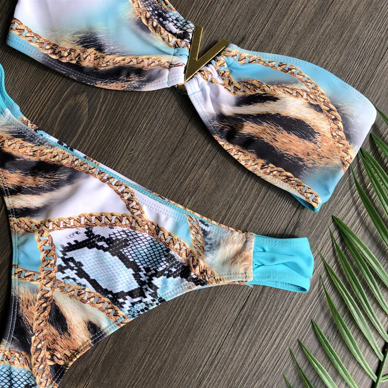 В-X пикантный принт в виде змеиной купальник женский, v-образный вы...
