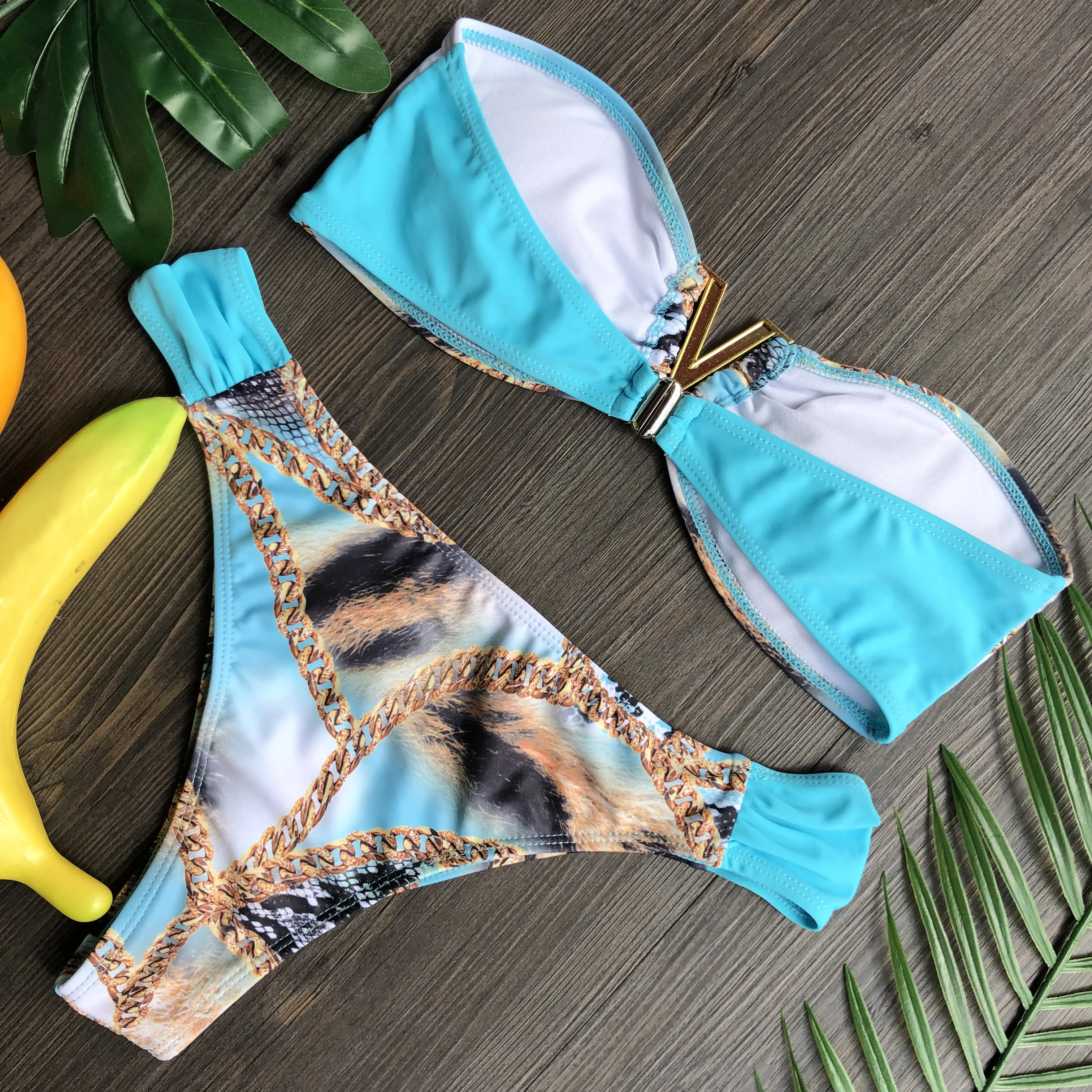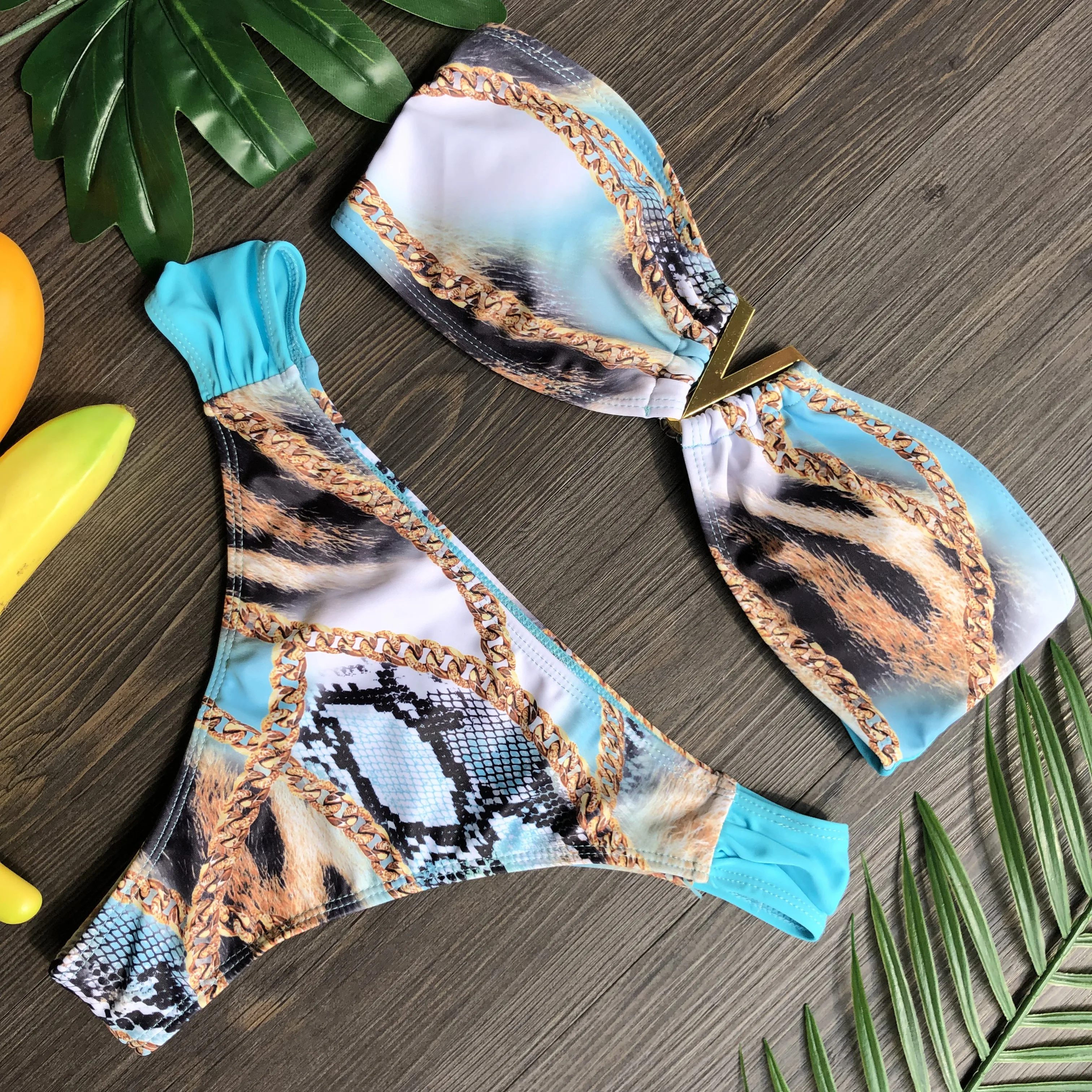 Женский купальник с принтом, сексуальный комплект микро бикини, бандо, купальники с высоким вырезом, летний купальный костюм, Бразильское бикини, 2020