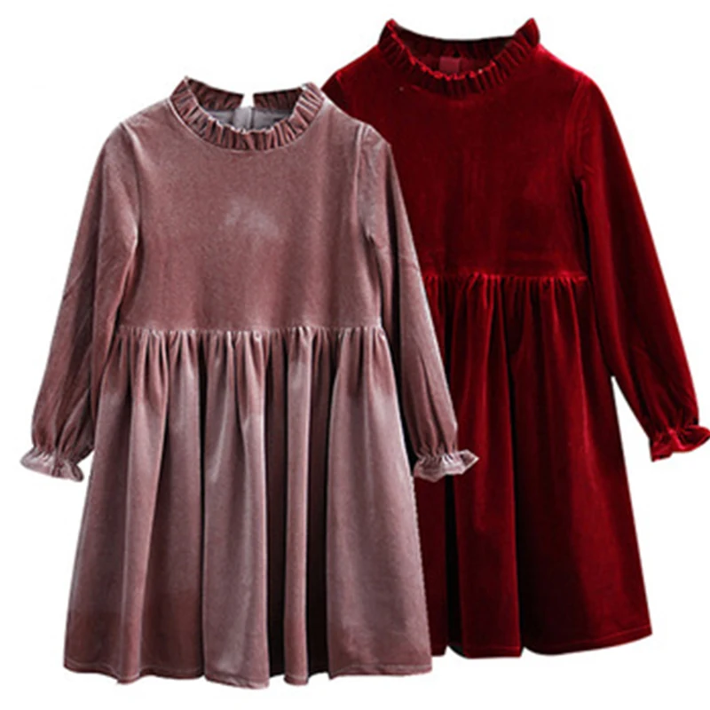 Детские зимние платья с длинными рукавами для детей возрастом от 4 до 14 лет, элегантное бархатное вечернее платье для девочек-подростков, Весенняя школьная детская одежда