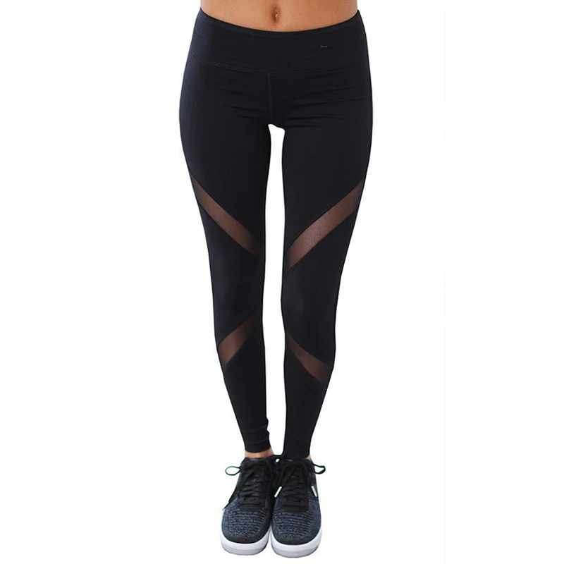 Быстросохнущие сетчатые Лоскутные штаны для йоги, черные эластичные...